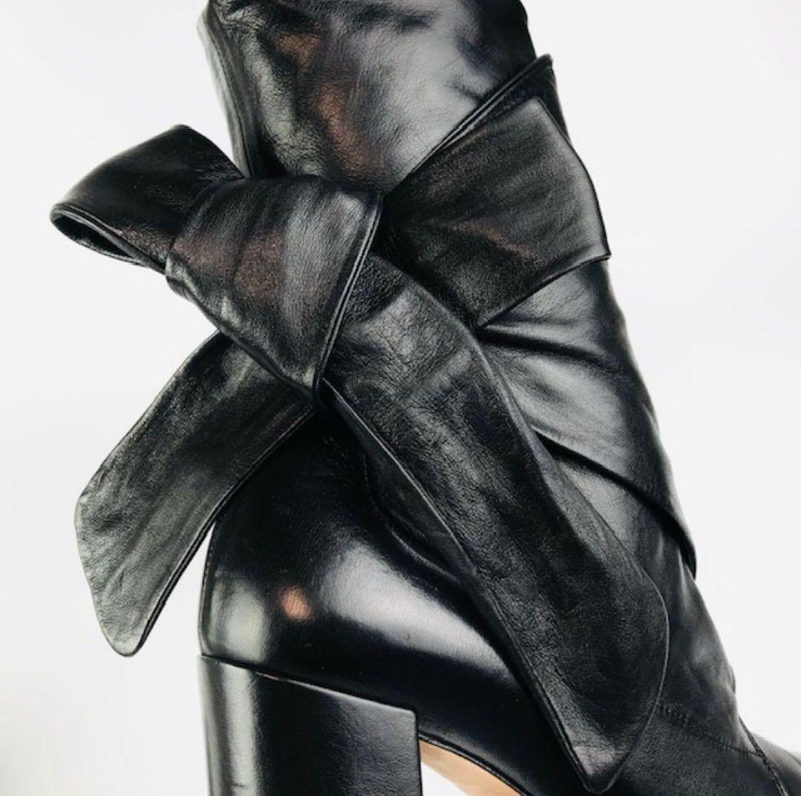 Christian Dior Short Boots Shoes Ribbon EU 36 US 6 Leather Black Authentic
