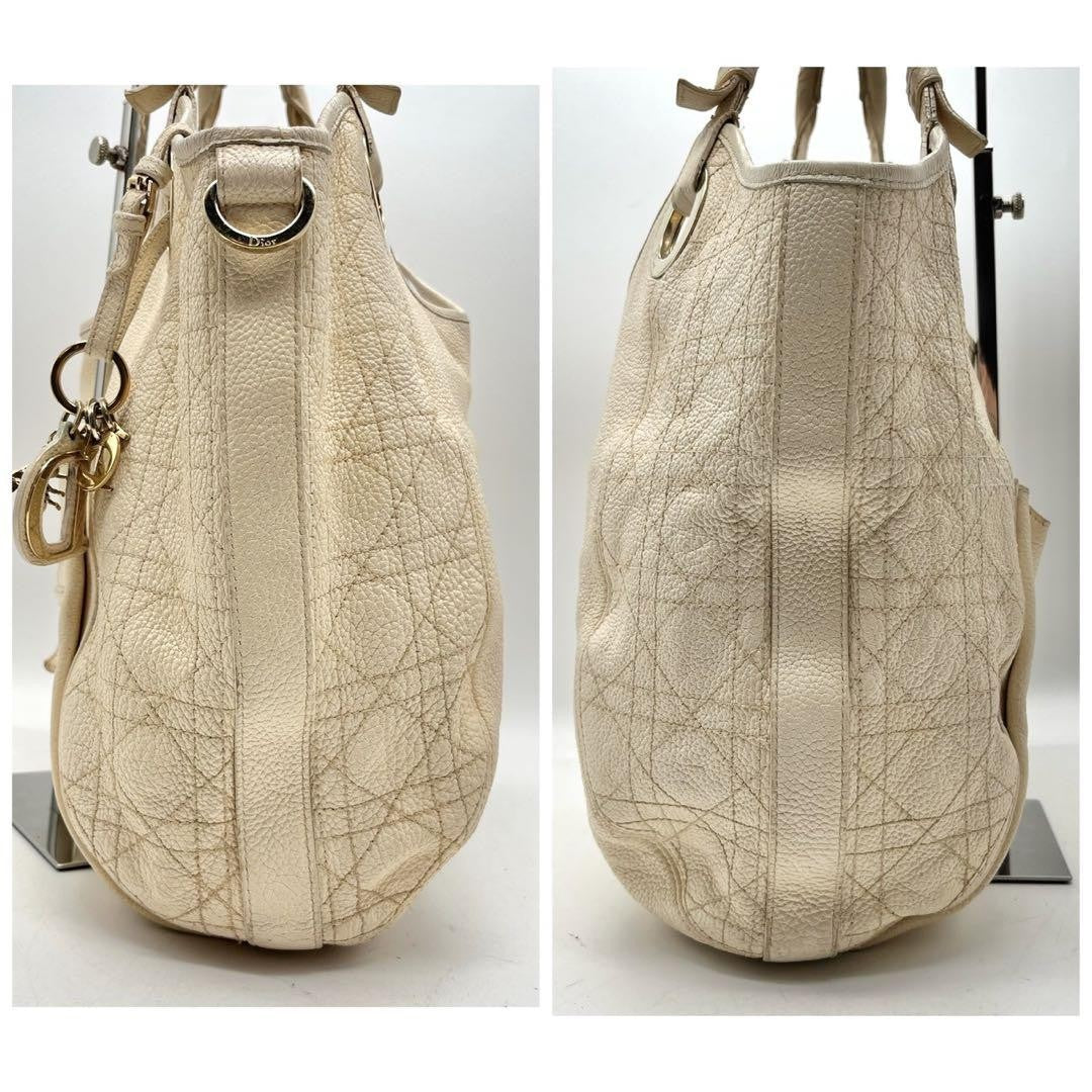 Christian Dior Shoulder Bag Purse Cannage Leather Beige Authentic
