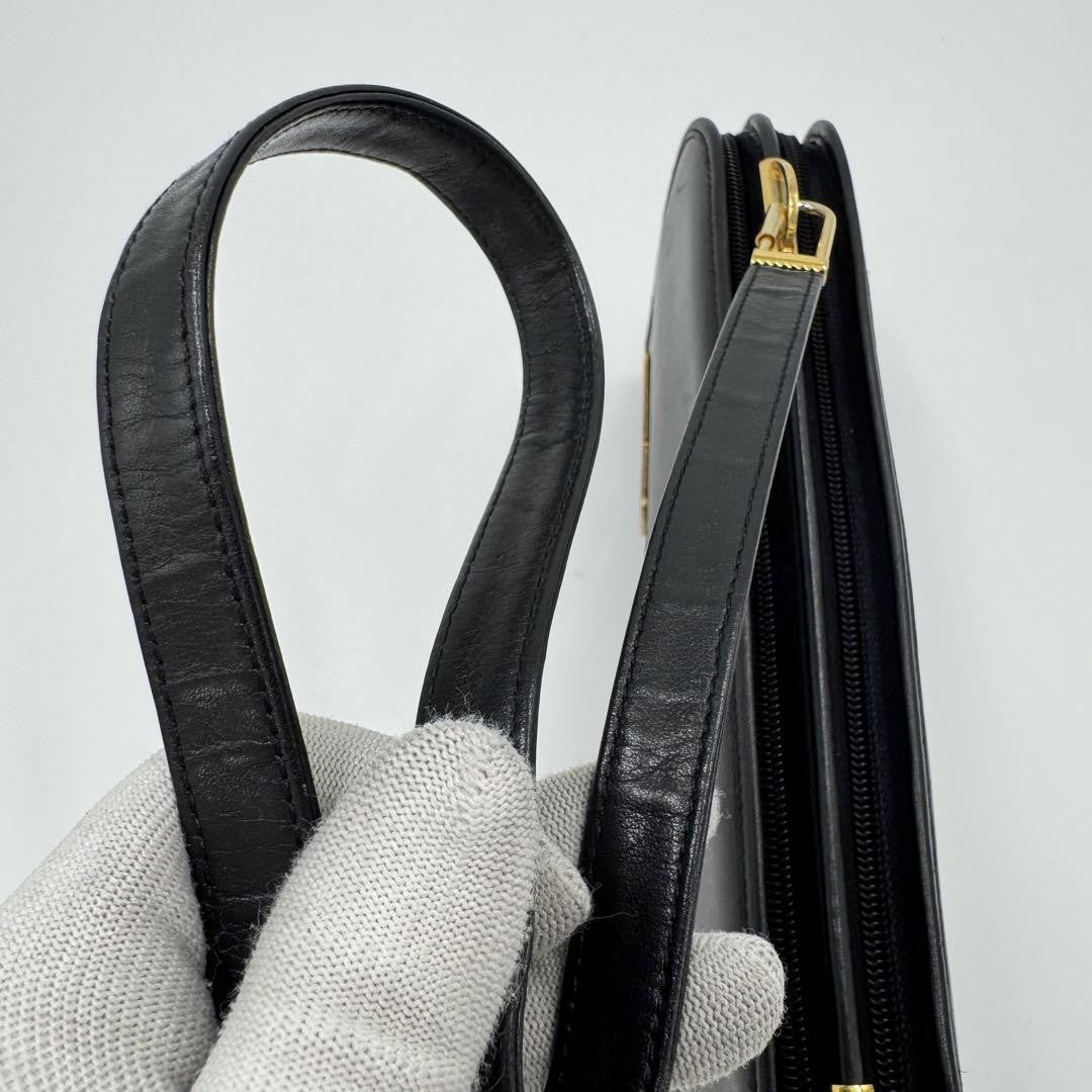 Christian Dior Shoulder Bag Purse CD Leather Black Authentic