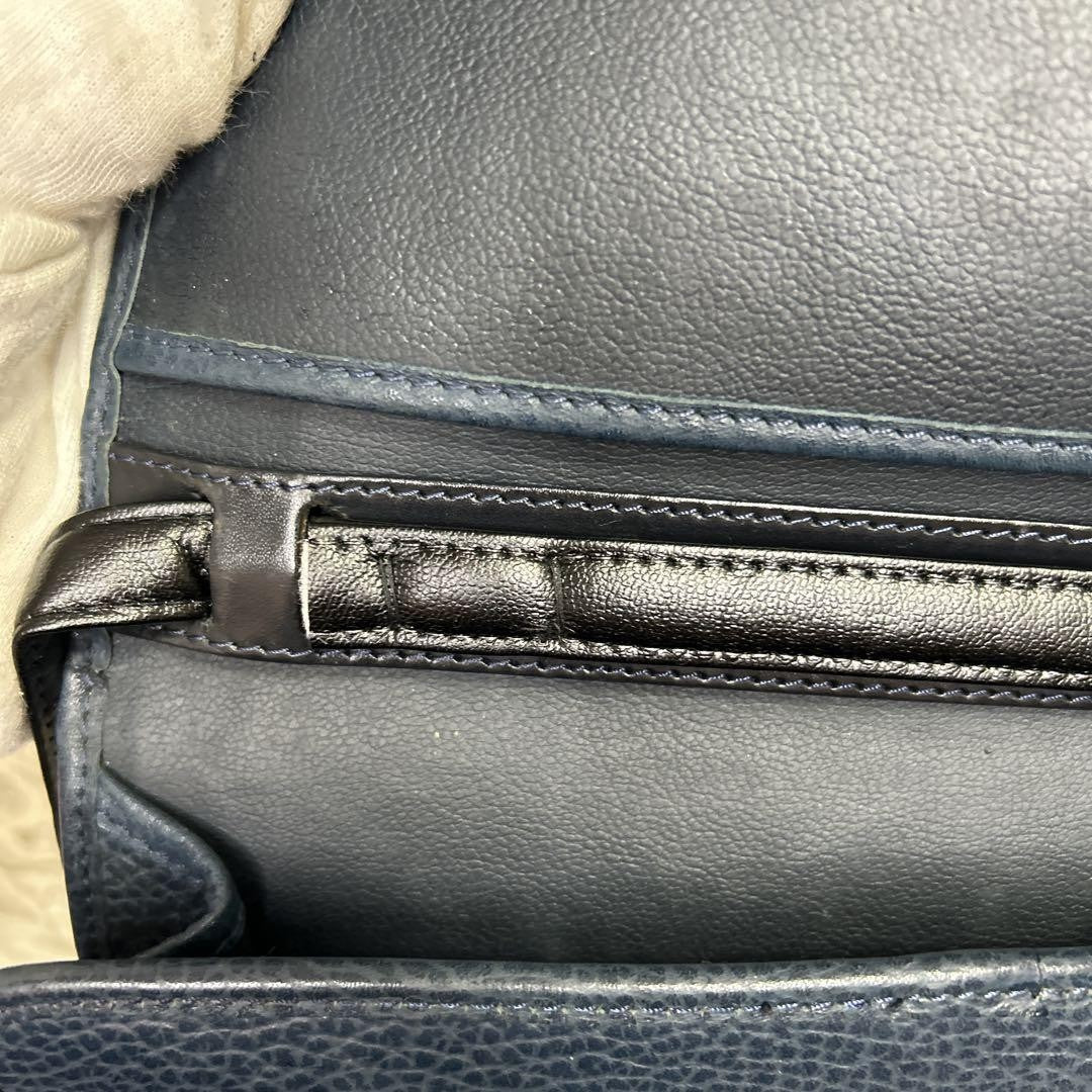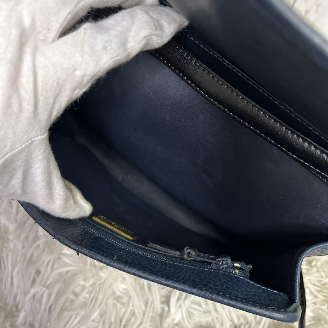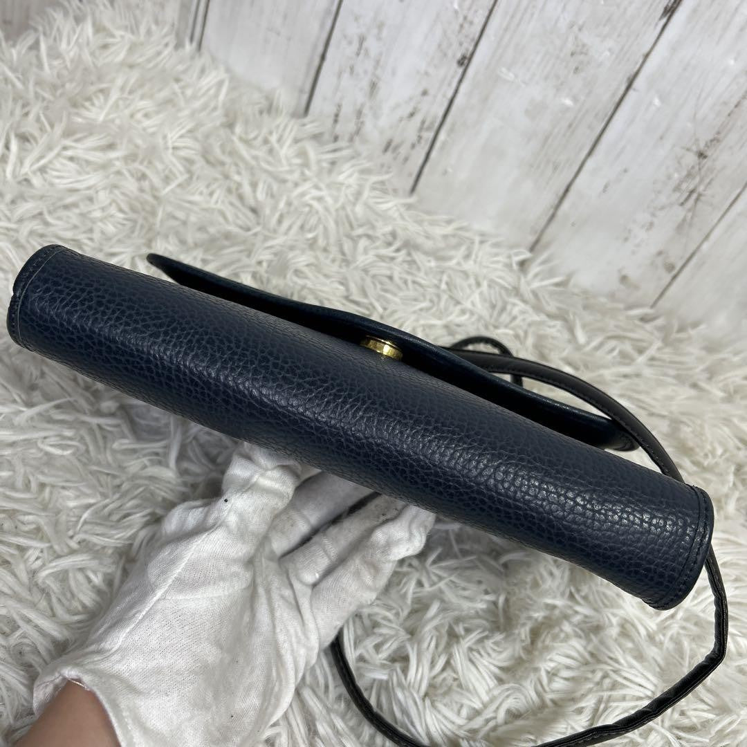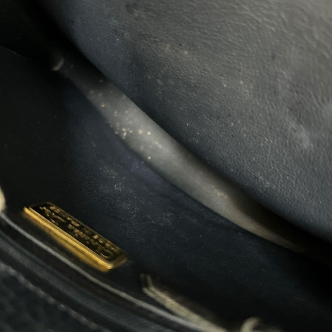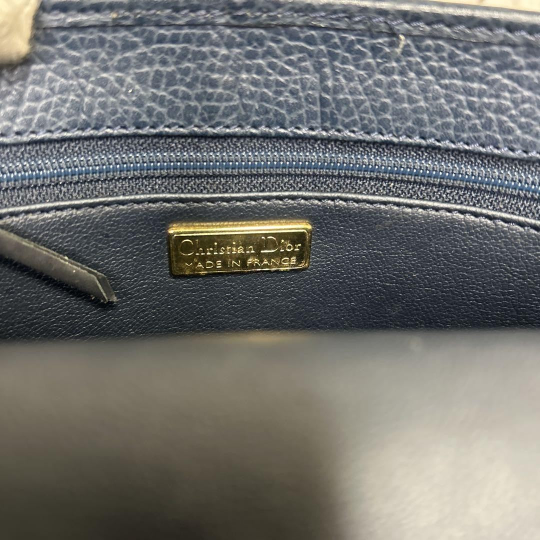 Christian Dior Shoulder Bag Purse CD Leather Navy Authentic