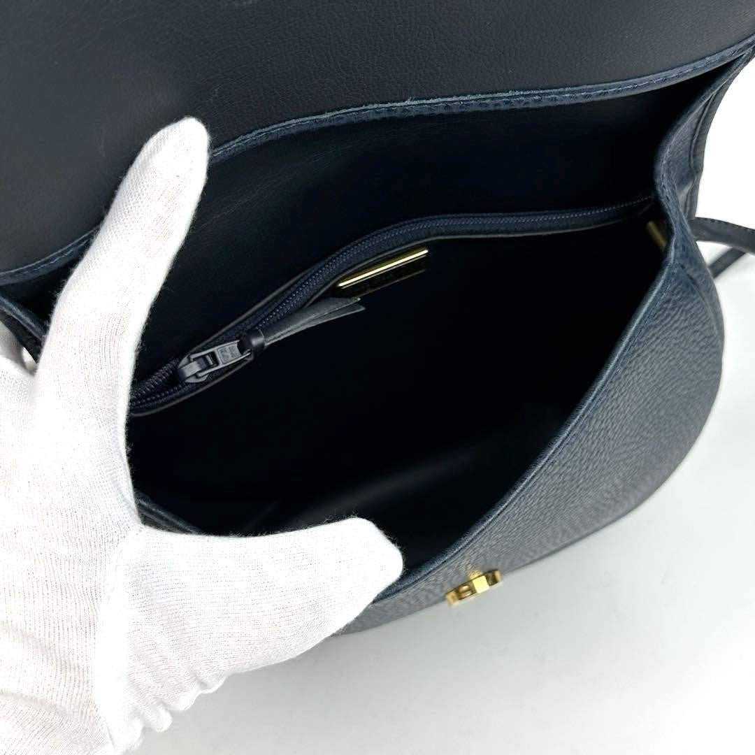 Christian Dior Shoulder Bag Purse CD Leather Navy Authentic