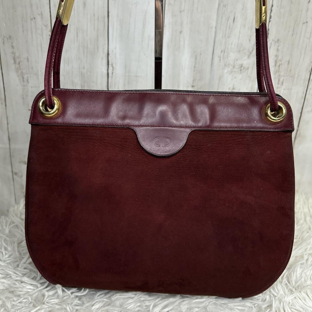 Christian Dior Shoulder Bag Purse CD Suede Red Authentic