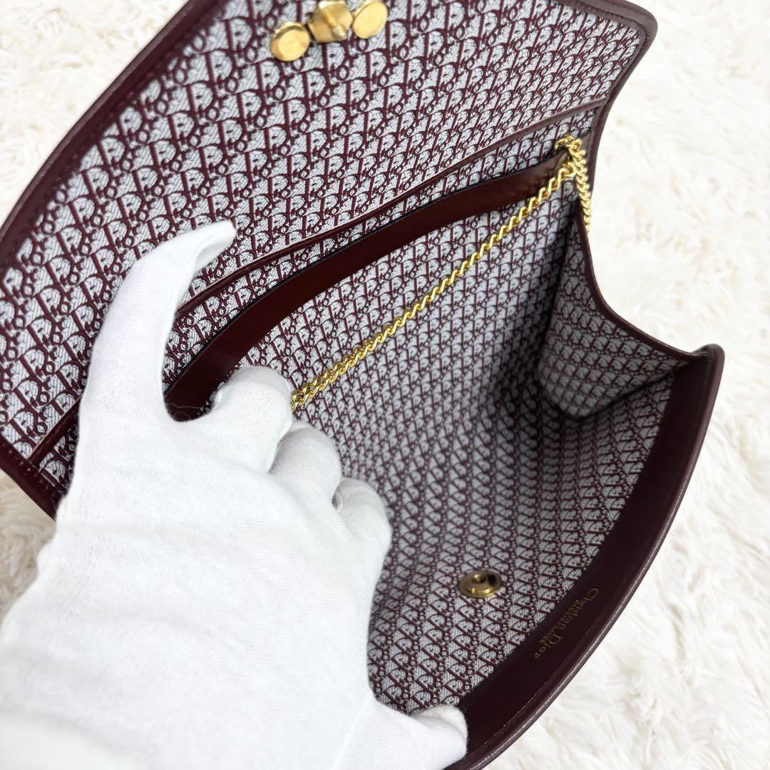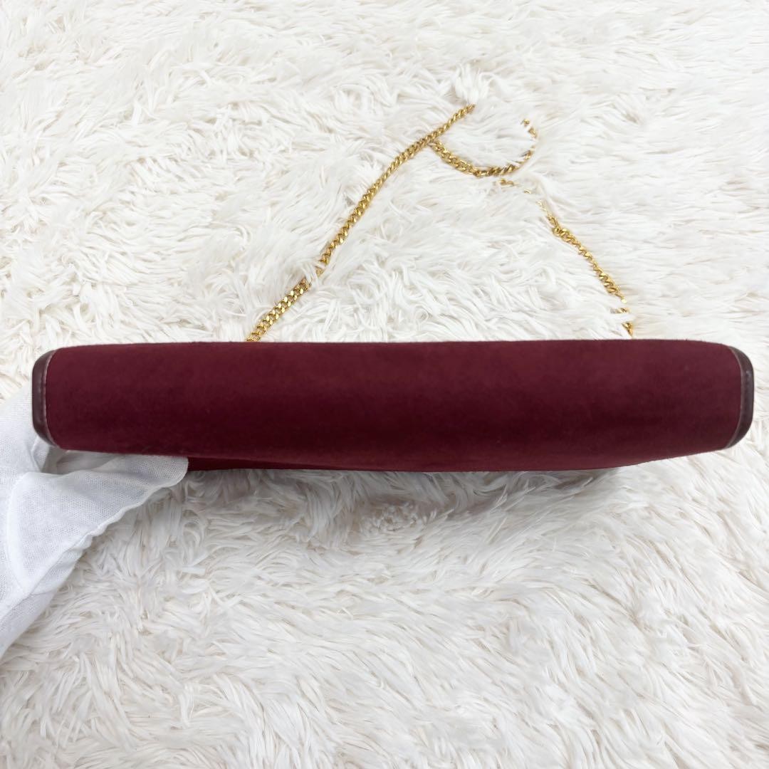 Christian Dior Shoulder Bag Purse Chain Suede Leather Bordeaux Authentic