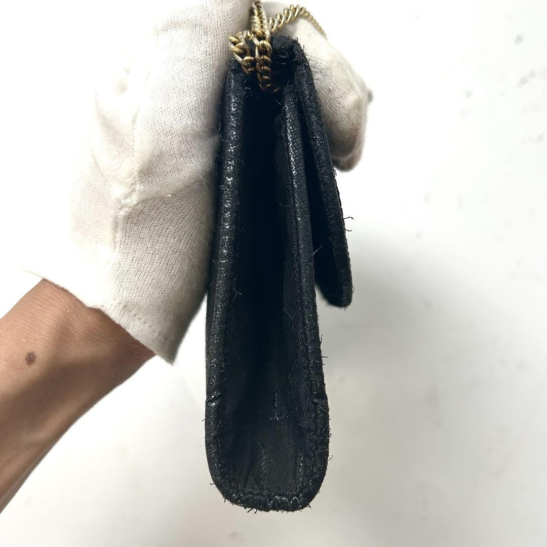 Christian Dior Shoulder Bag Purse Honeycomb Chain Canvas Black Authentic