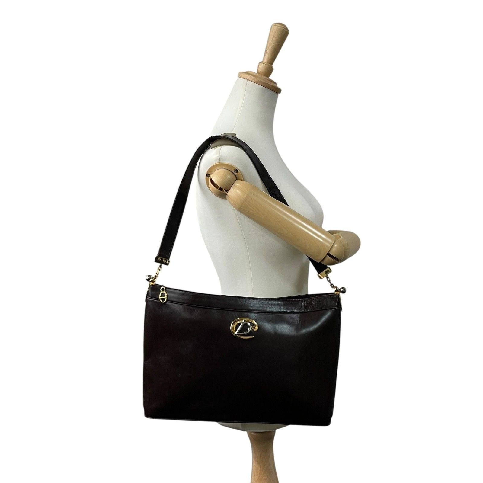 Christian Dior Shoulder Bag Purse Leather Dark Brown Authentic