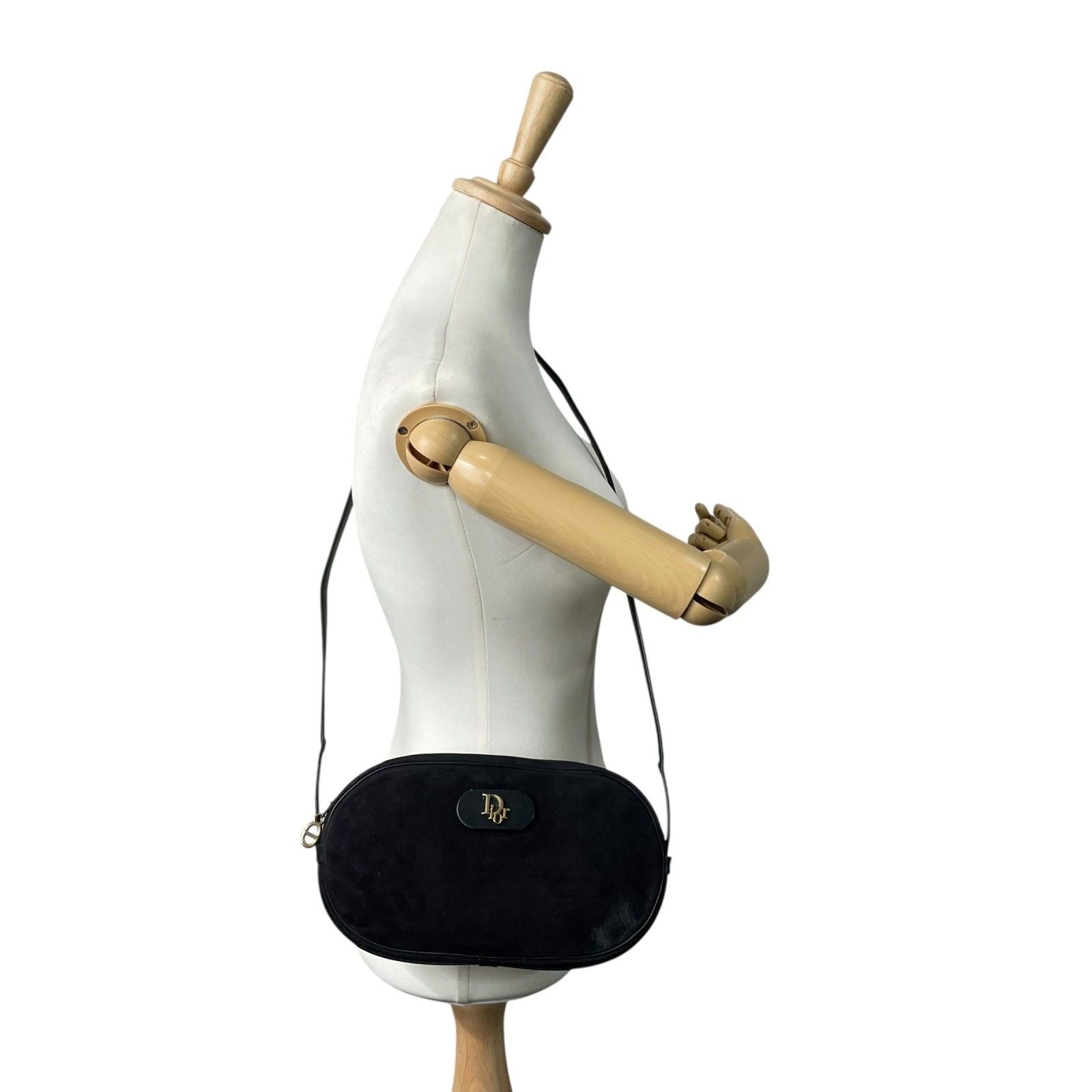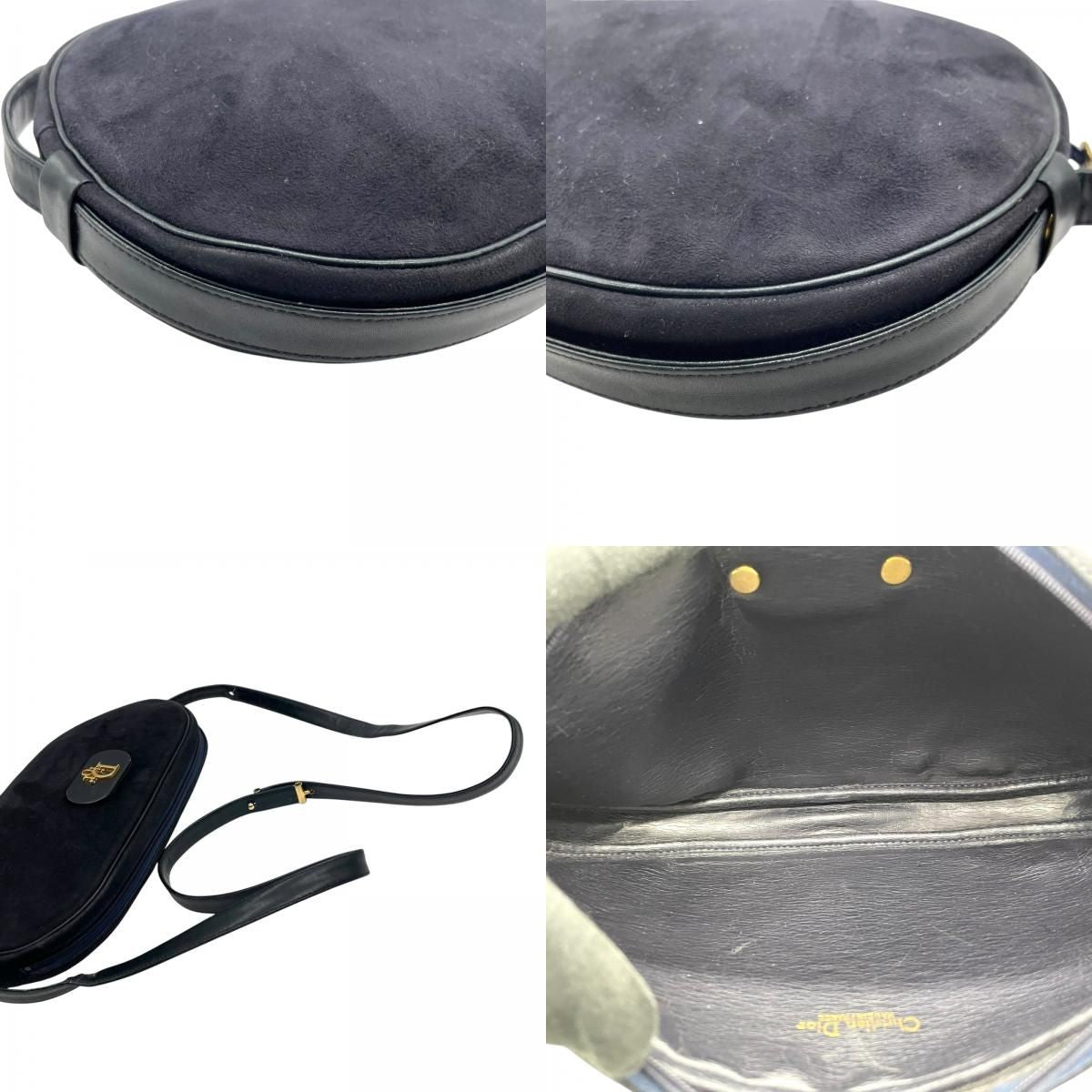 Christian Dior Shoulder Bag Purse Logo Suede Leather Navy Authentic