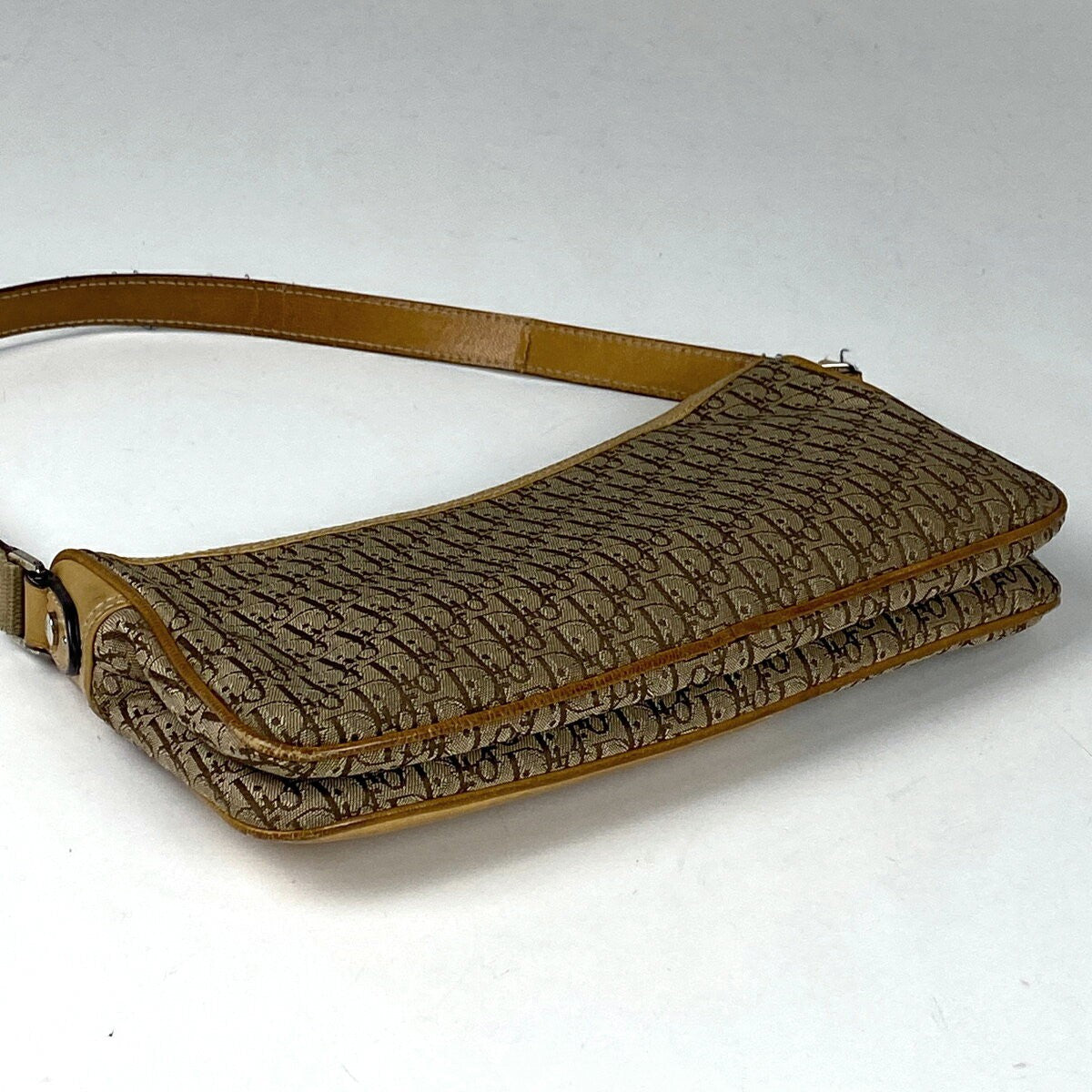 Christian Dior Shoulder Bag Purse Trotter Canvas Leather Brown Authentic