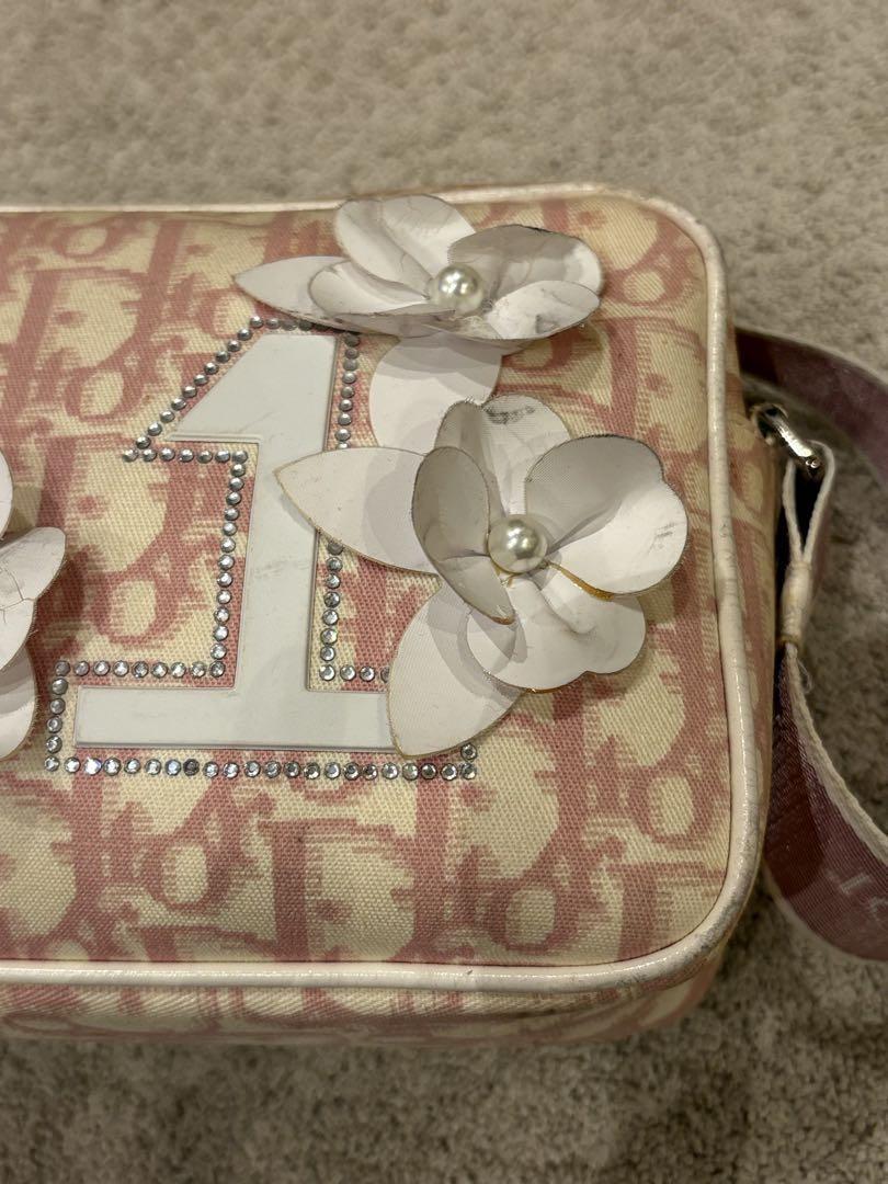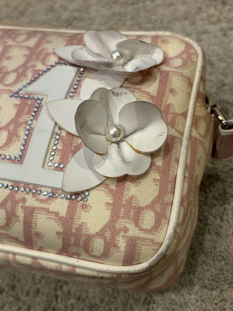 Christian Dior Shoulder Bag Purse Trotter No.1 Canvas Pink Authentic