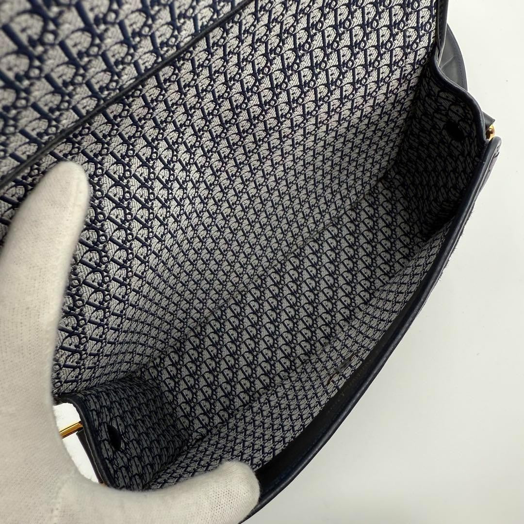 Christian Dior Shoulder Bag Purse Trotter Suede Leather Dark Navy Authentic