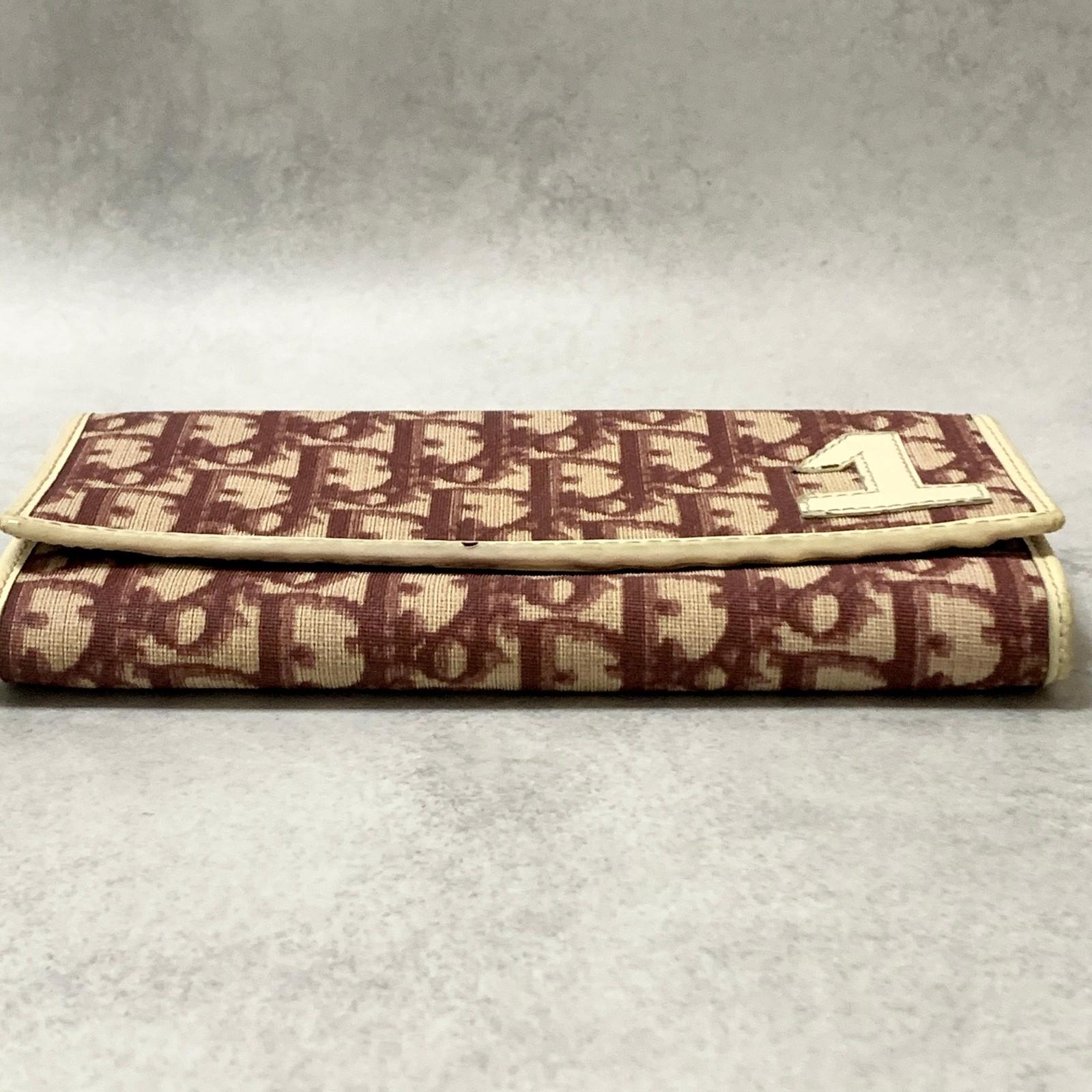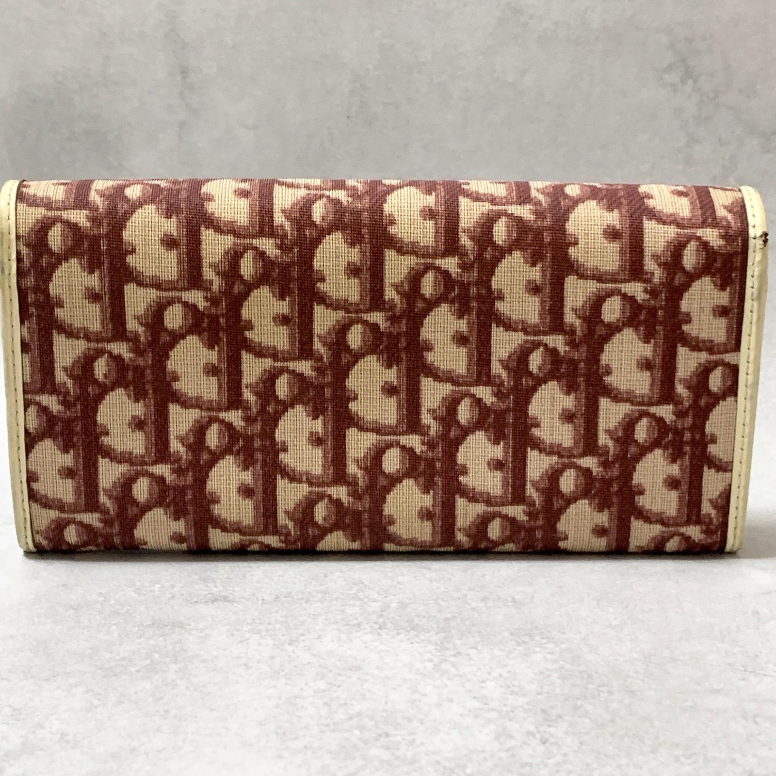 Christian Dior Wallet Trotter No.2 PVC Flap Long Purse Canvas Red Authentic