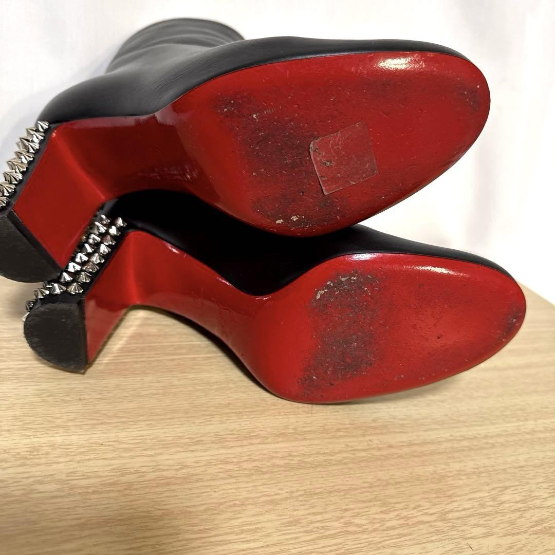 Christian Louboutin Short Boots Shoes Studs EU 37 US 7 Leather Black Authentic