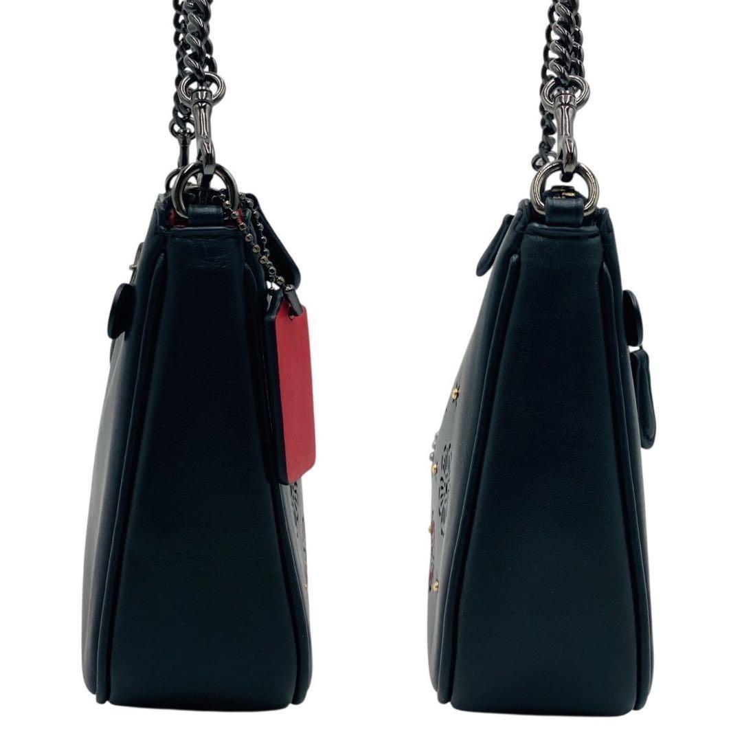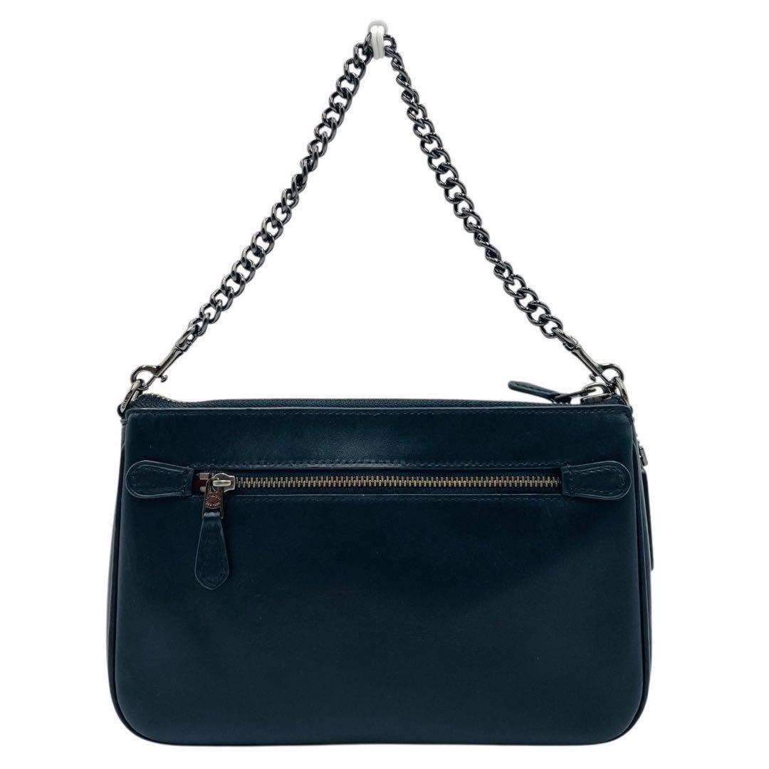 COACH Accessory Pouch Hand Bag Tote Purse Chain Leather Black Authentic