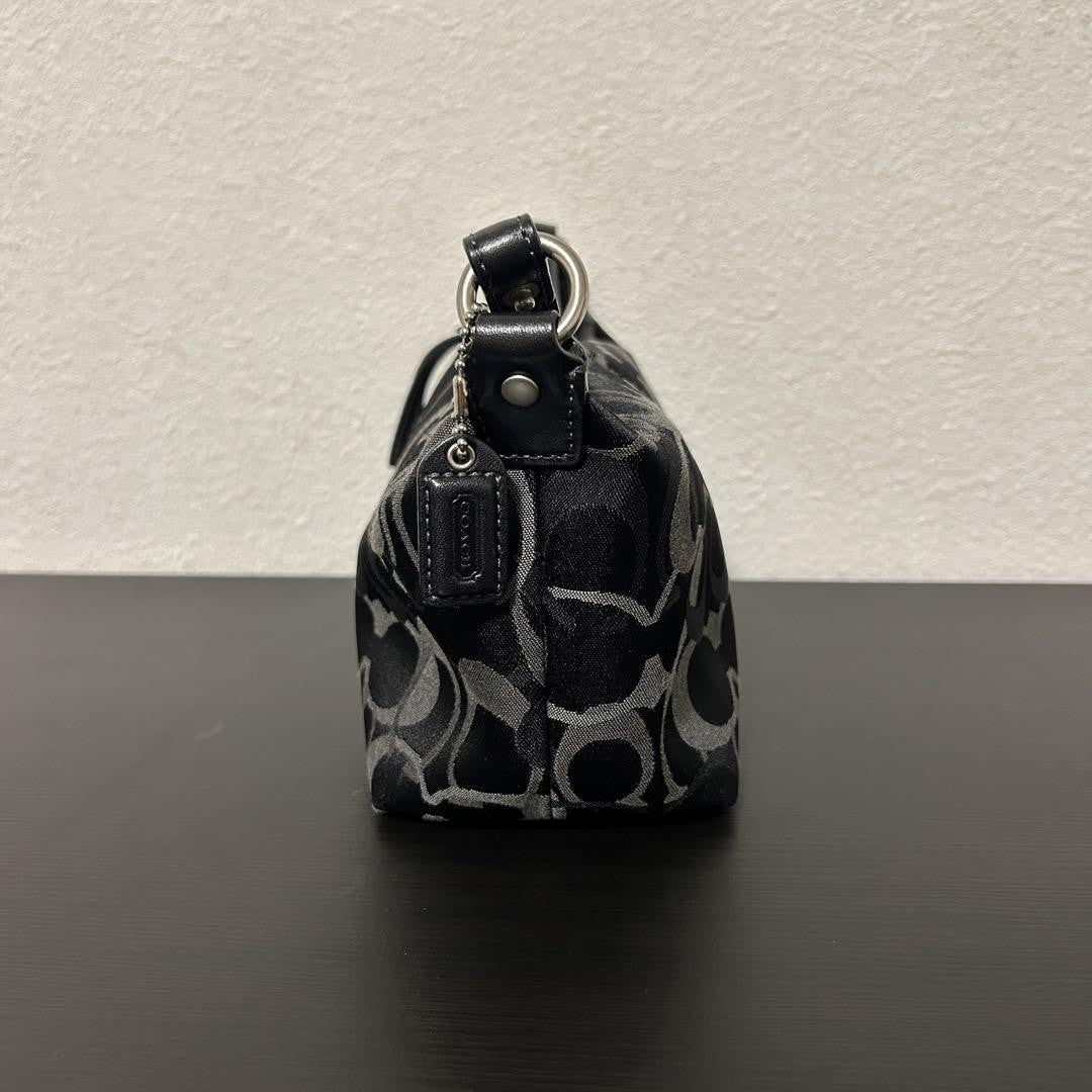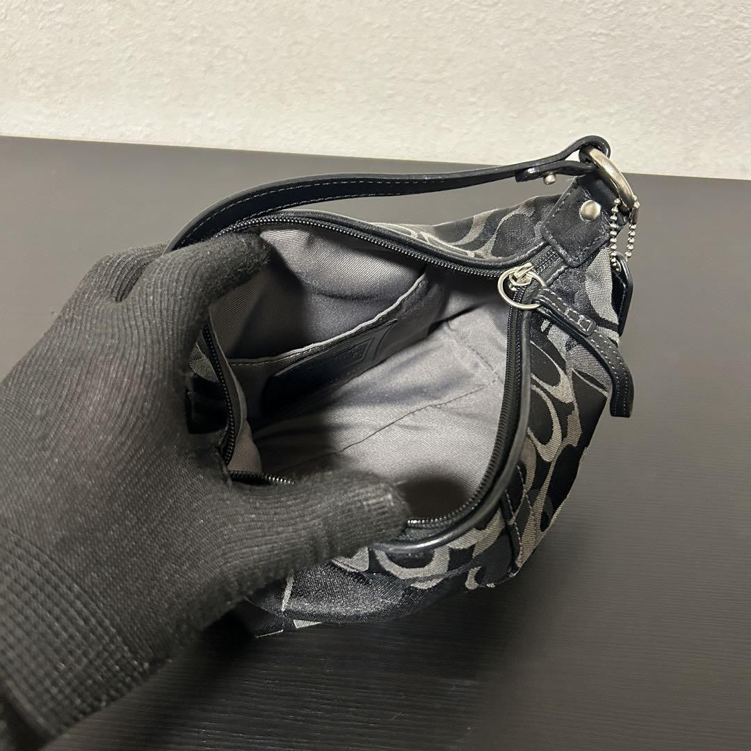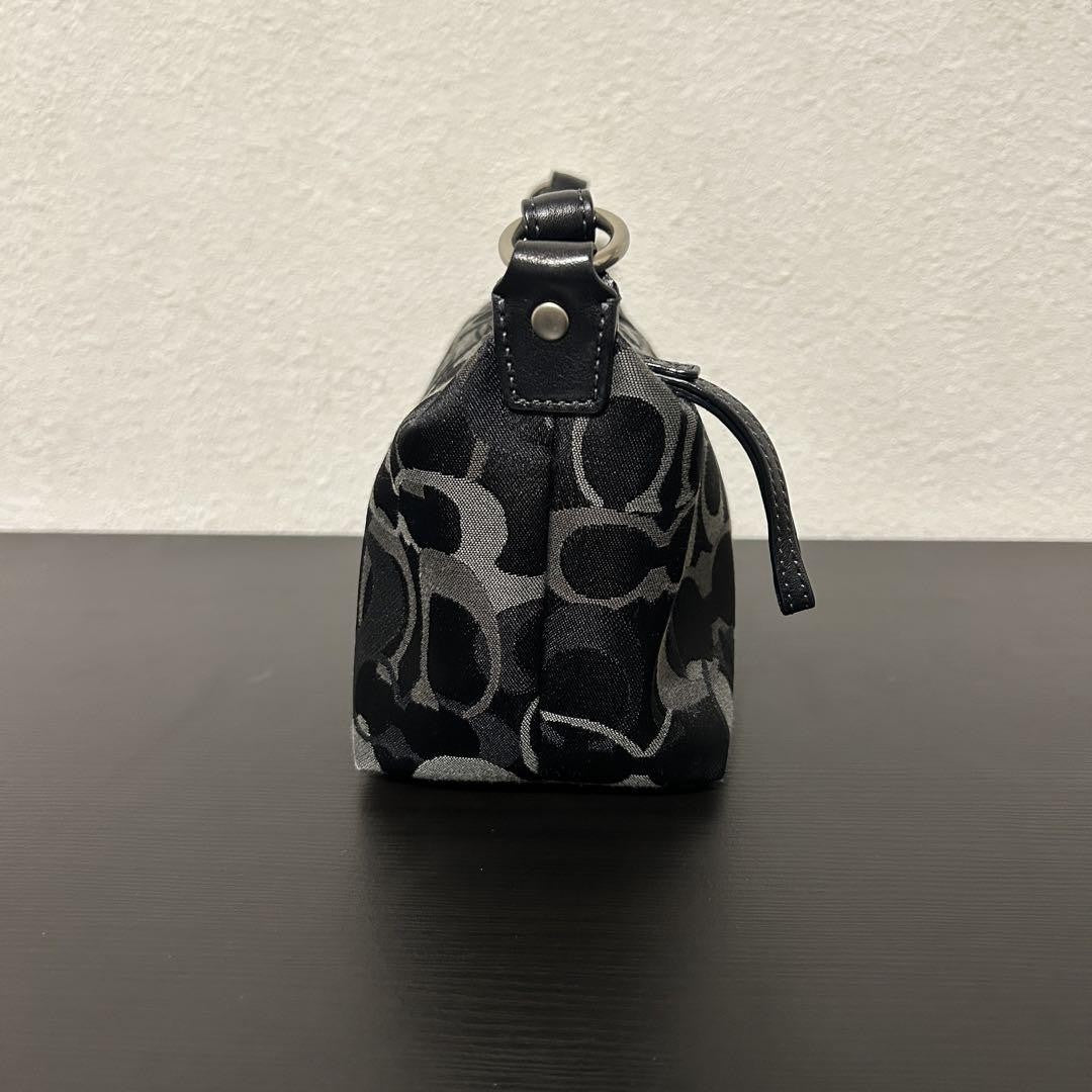 COACH Accessory Pouch Hand Bag Tote Purse Signature Canvas Black Authentic