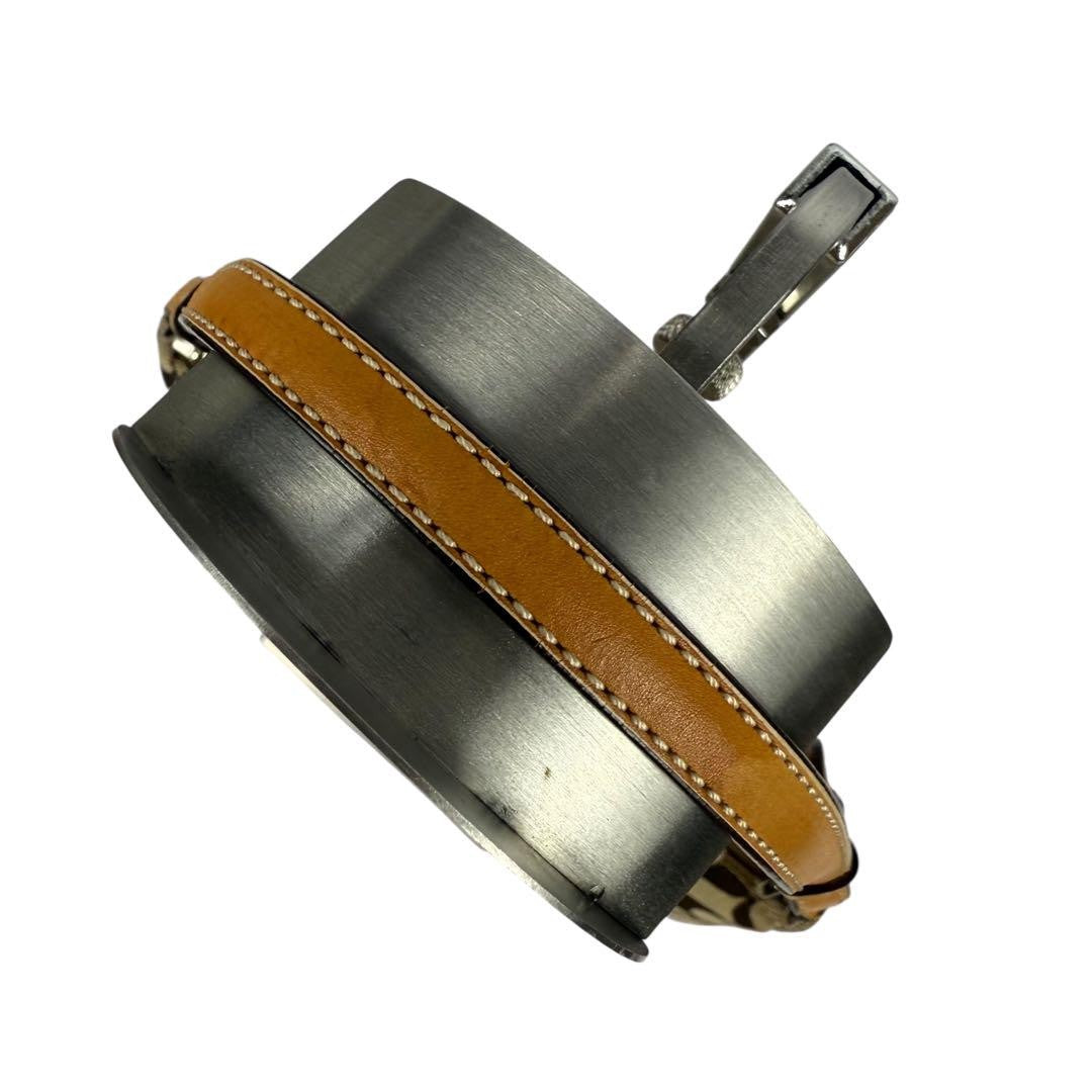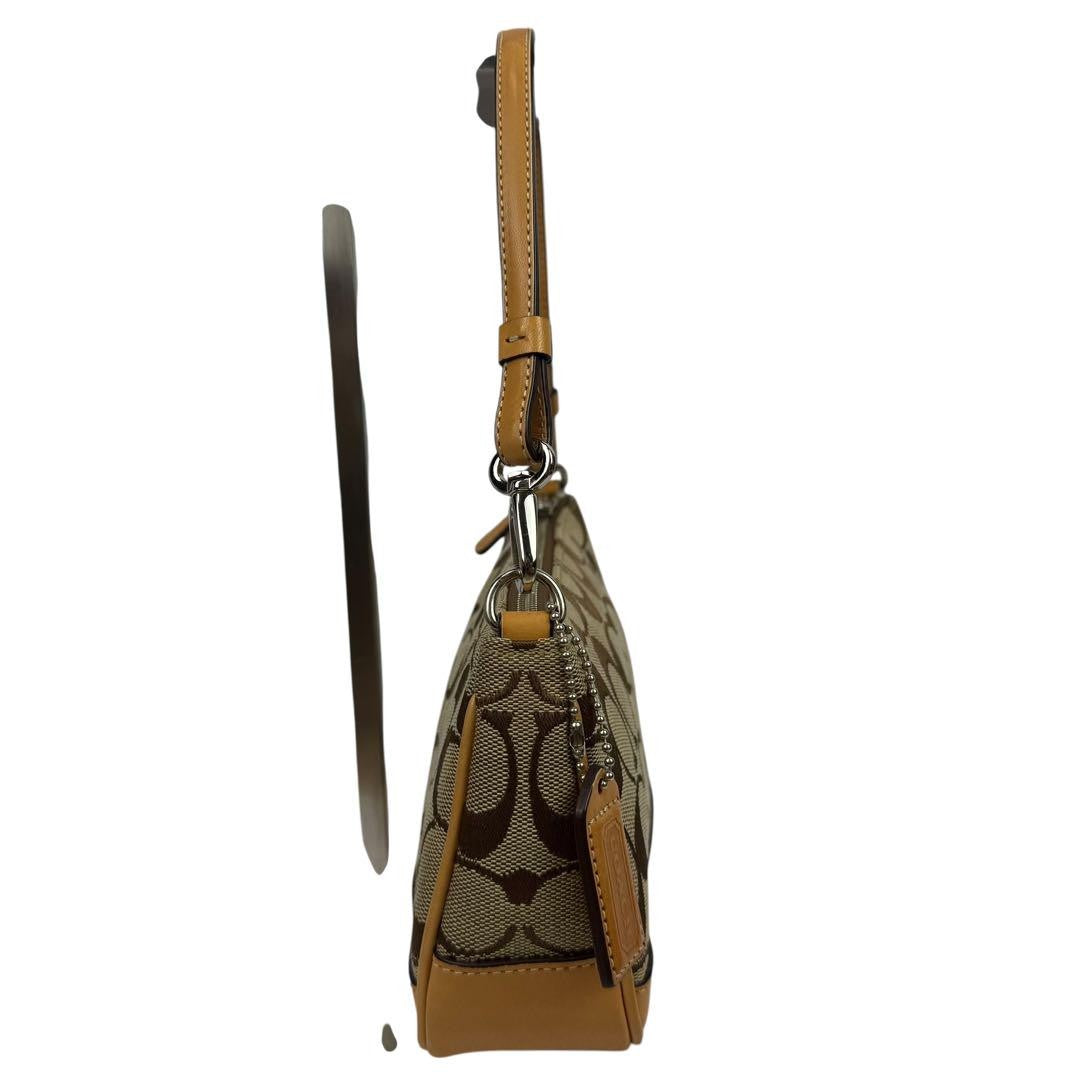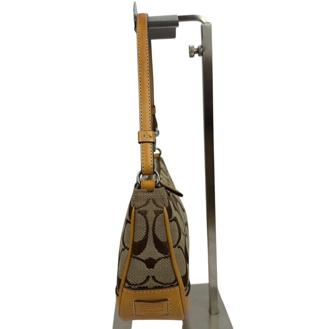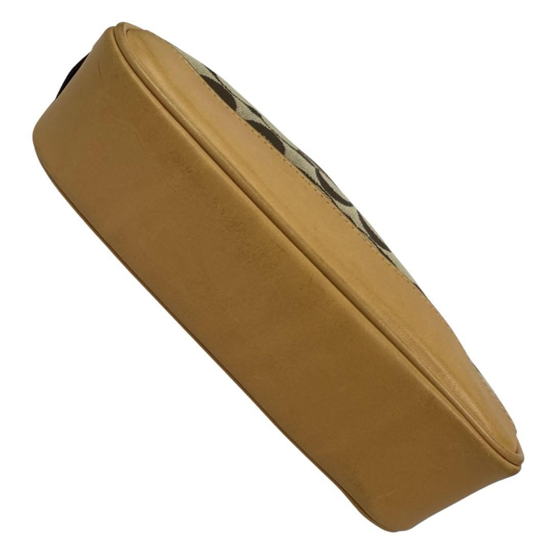 COACH Accessory Pouch Hand Bag Tote Purse Signature Canvas Leather Beige Auth
