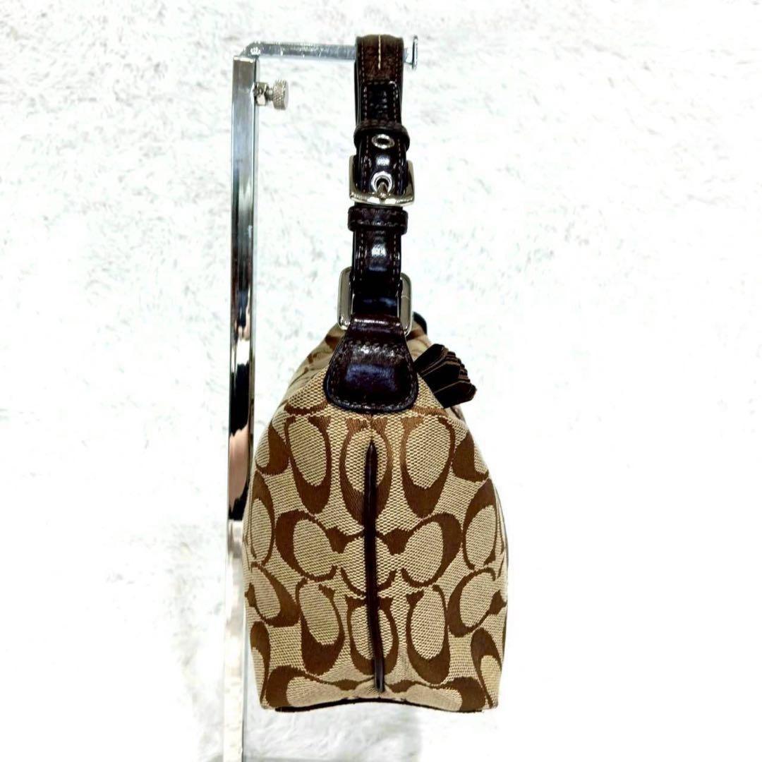 COACH Accessory Pouch Hand Bag Tote Purse Signature Canvas Suede Leather Brown