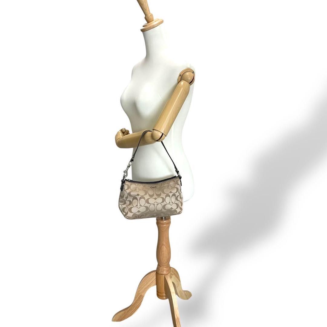 COACH Accessory Pouch Hand Bag Tote Purse Signature Nylon Leather Gold Authentic