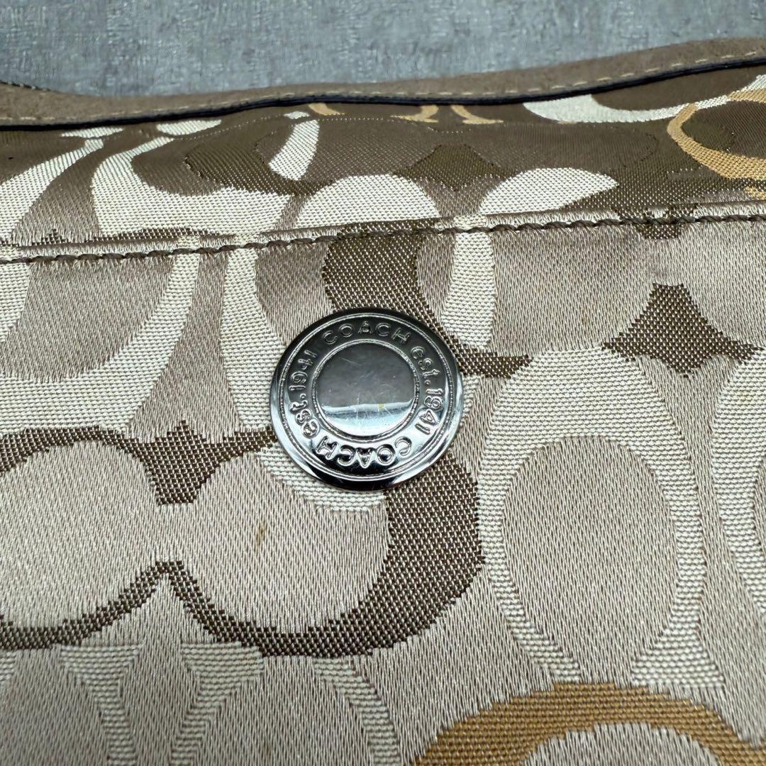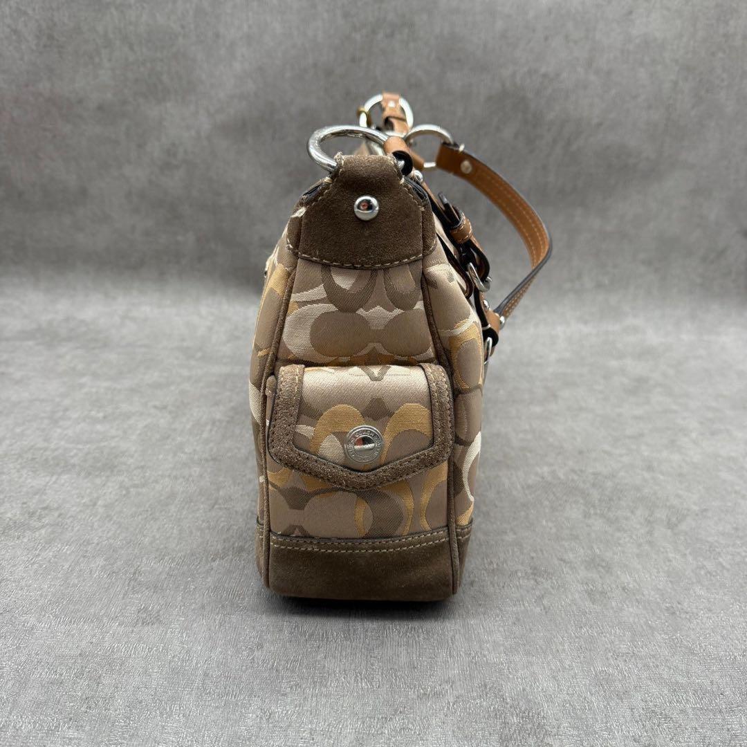 COACH Accessory Pouch Hand Bag Tote Purse Signature Suede Beige Authentic