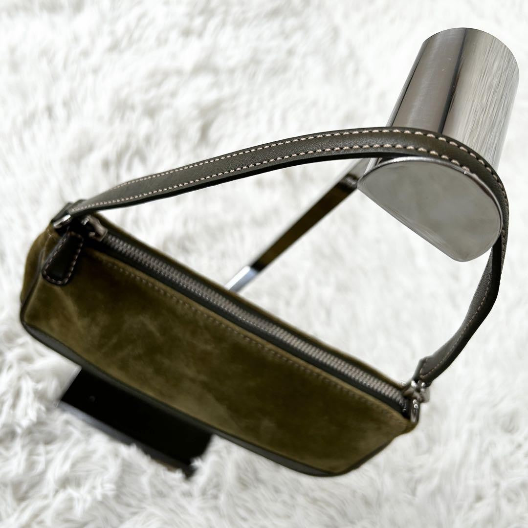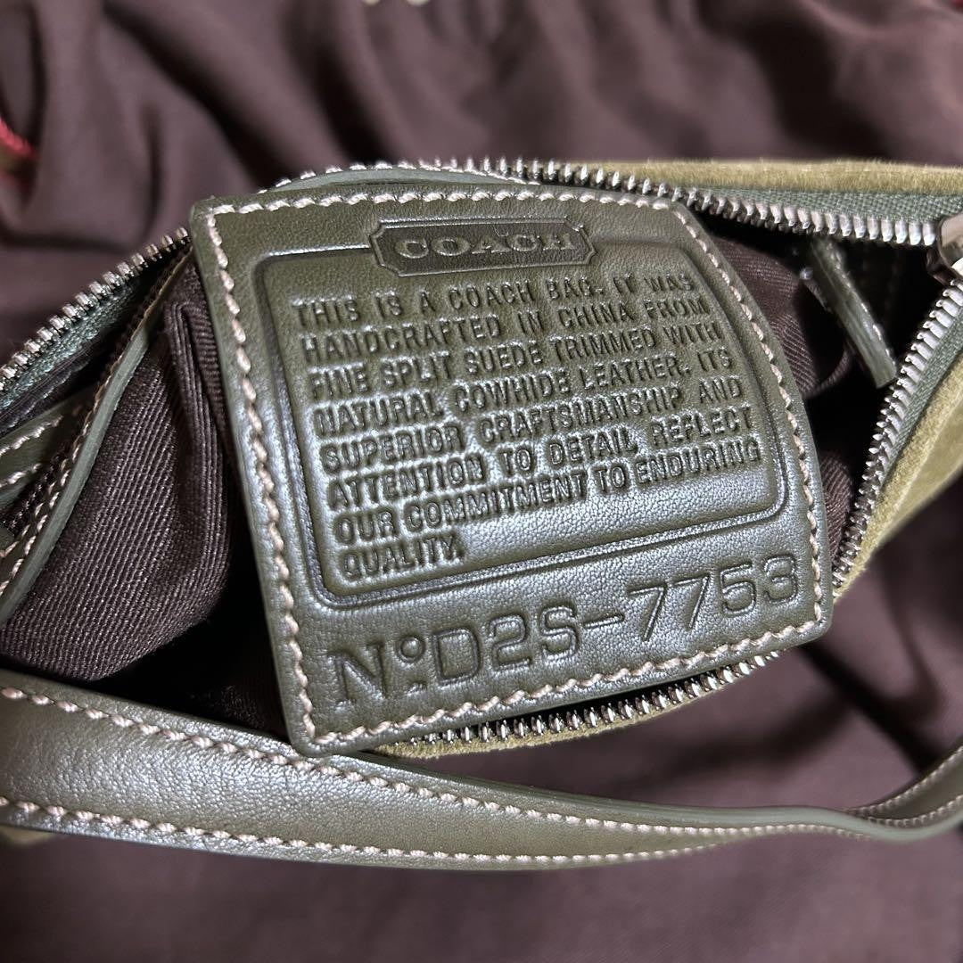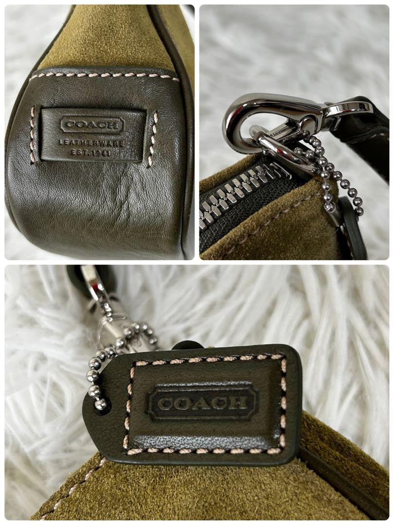 COACH Accessory Pouch Hand Bag Tote Purse Suede Leather Green Khaki Authentic