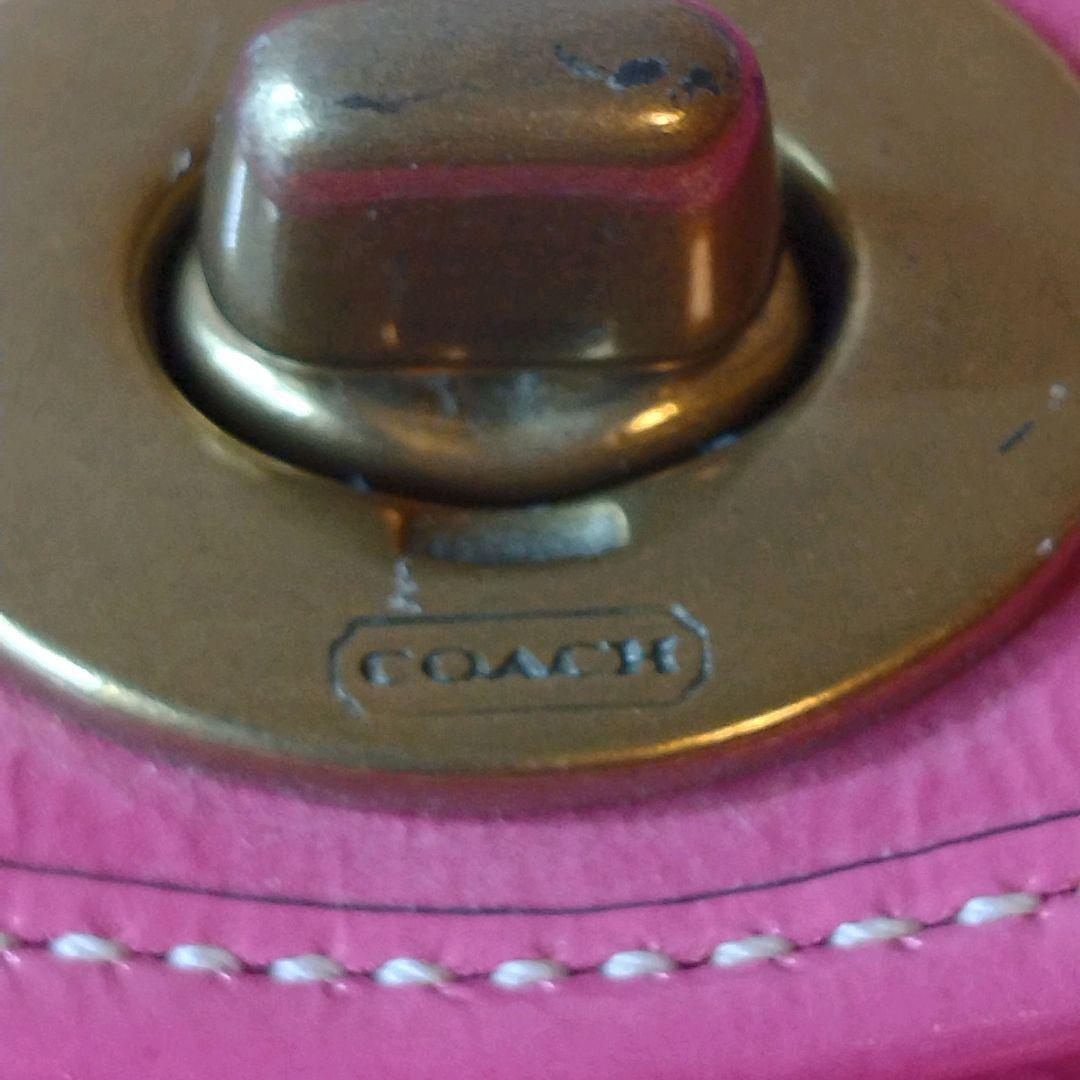 COACH Accessory Pouch Hand Bag Tote Purse Turn Lock Patent Leather Pink Auth