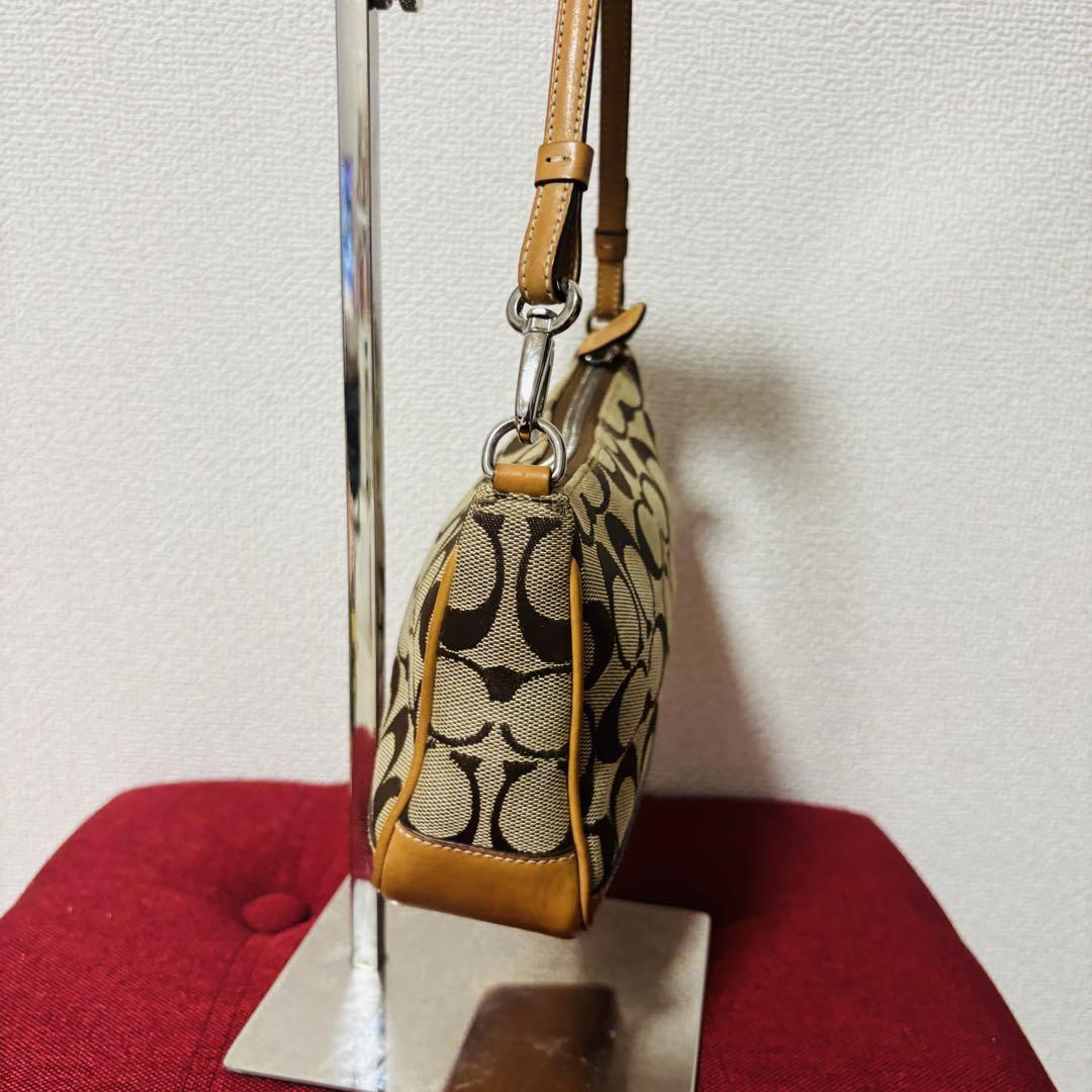 COACH Accessory Pouch Shoulder Bag 6094 Signature Canvas Leather Beige Brown