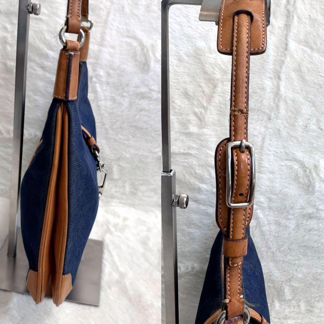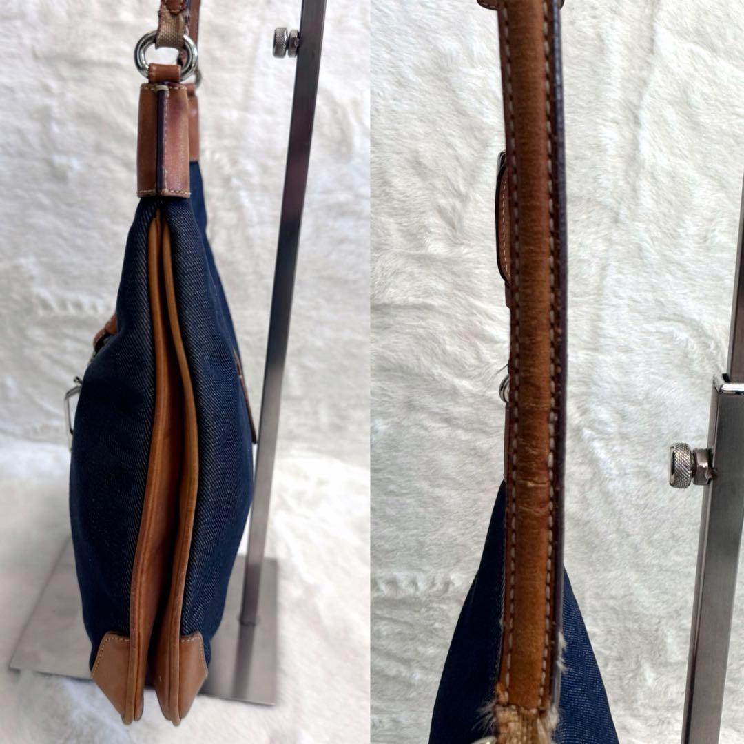 COACH Accessory Pouch Shoulder Bag Purse Denim Leather Blue Brown Authentic