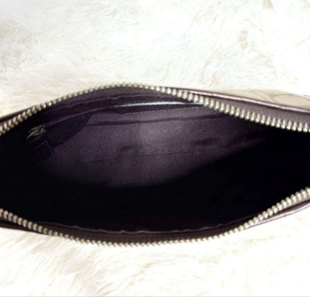 COACH Accessory Pouch Shoulder Bag Purse Signature Suede Canvas Beige Brown Auth