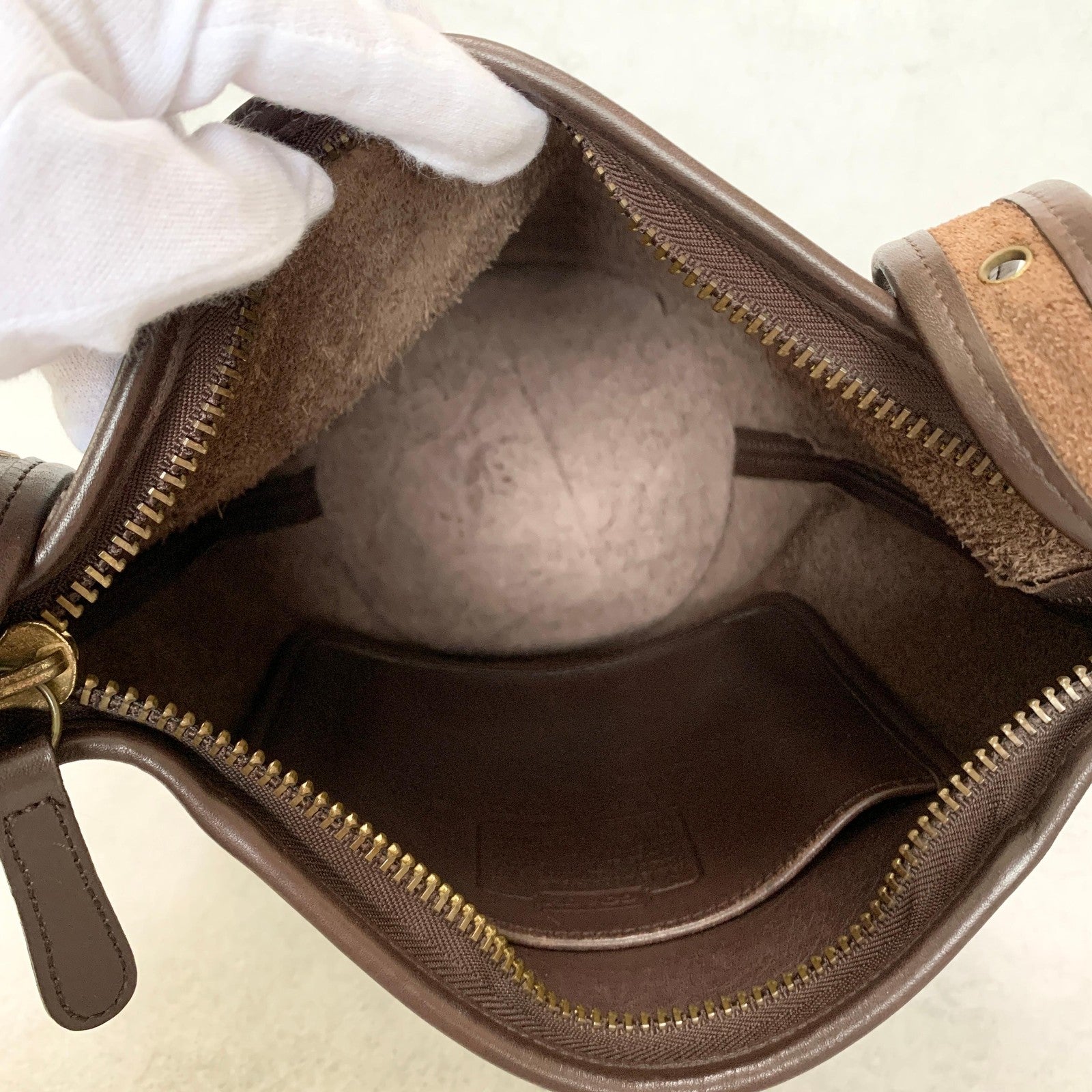COACH Bag 9960 Turn Lock Shoulder Purse Leather Brown Gold Used Authentic