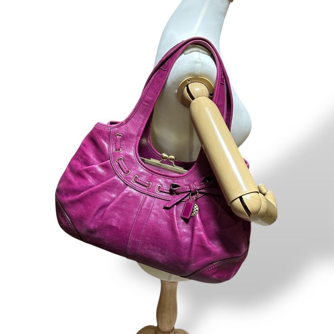 COACH Hand Bag Tote Purse 12725 Leather Purple Authentic