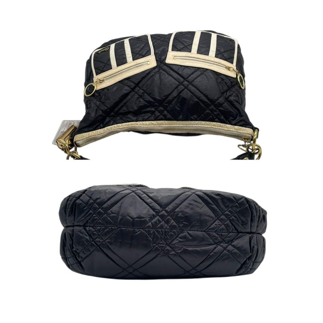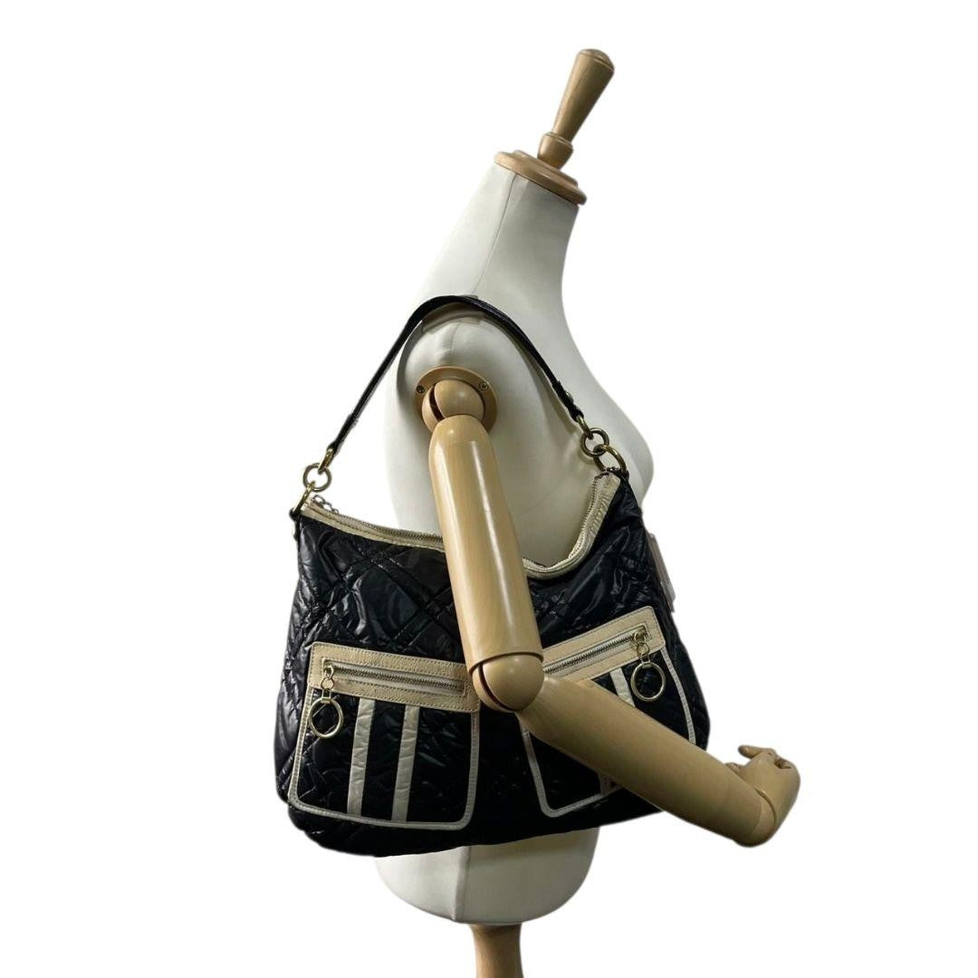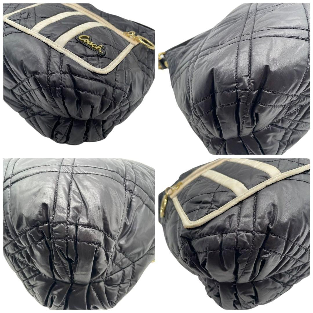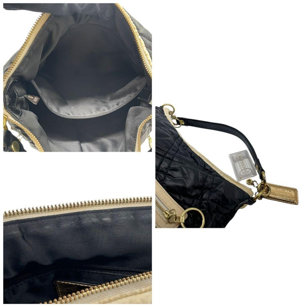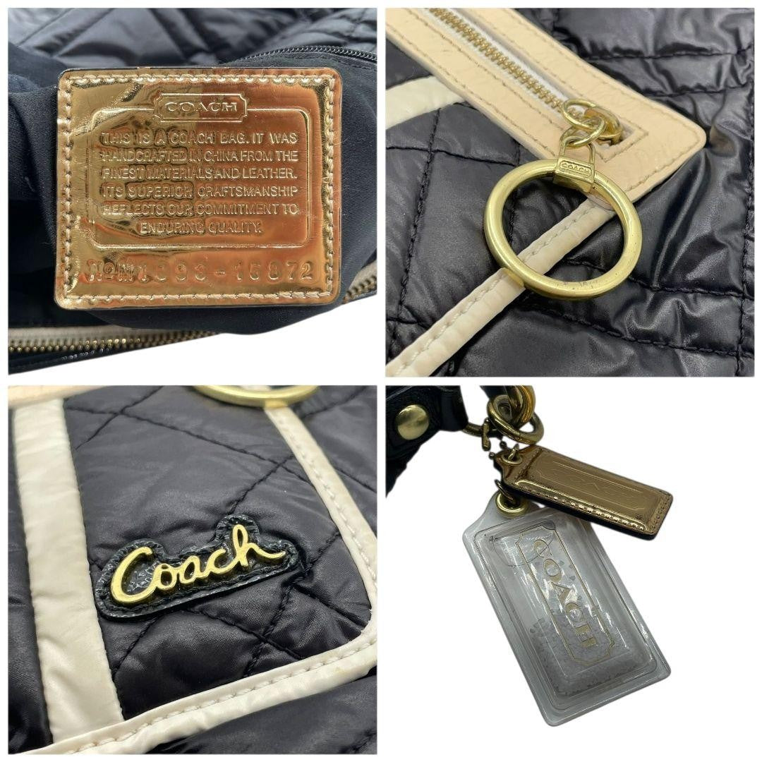COACH Hand Bag Tote Purse 15872 Nylon Leather Black White Authentic