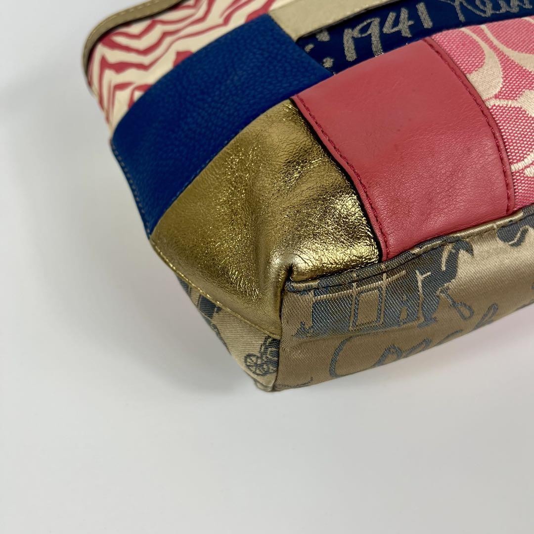 COACH Hand Bag Tote Purse 45656 Patchwork Signature Canvas Multicolor Authentic