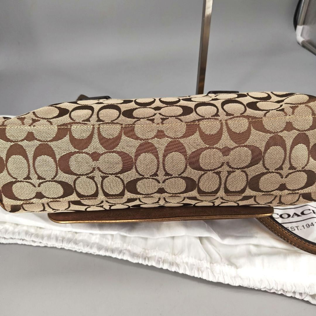 COACH Hand Bag Tote Purse Old 1498 Signature Suede Leather Canvas Beige Gold
