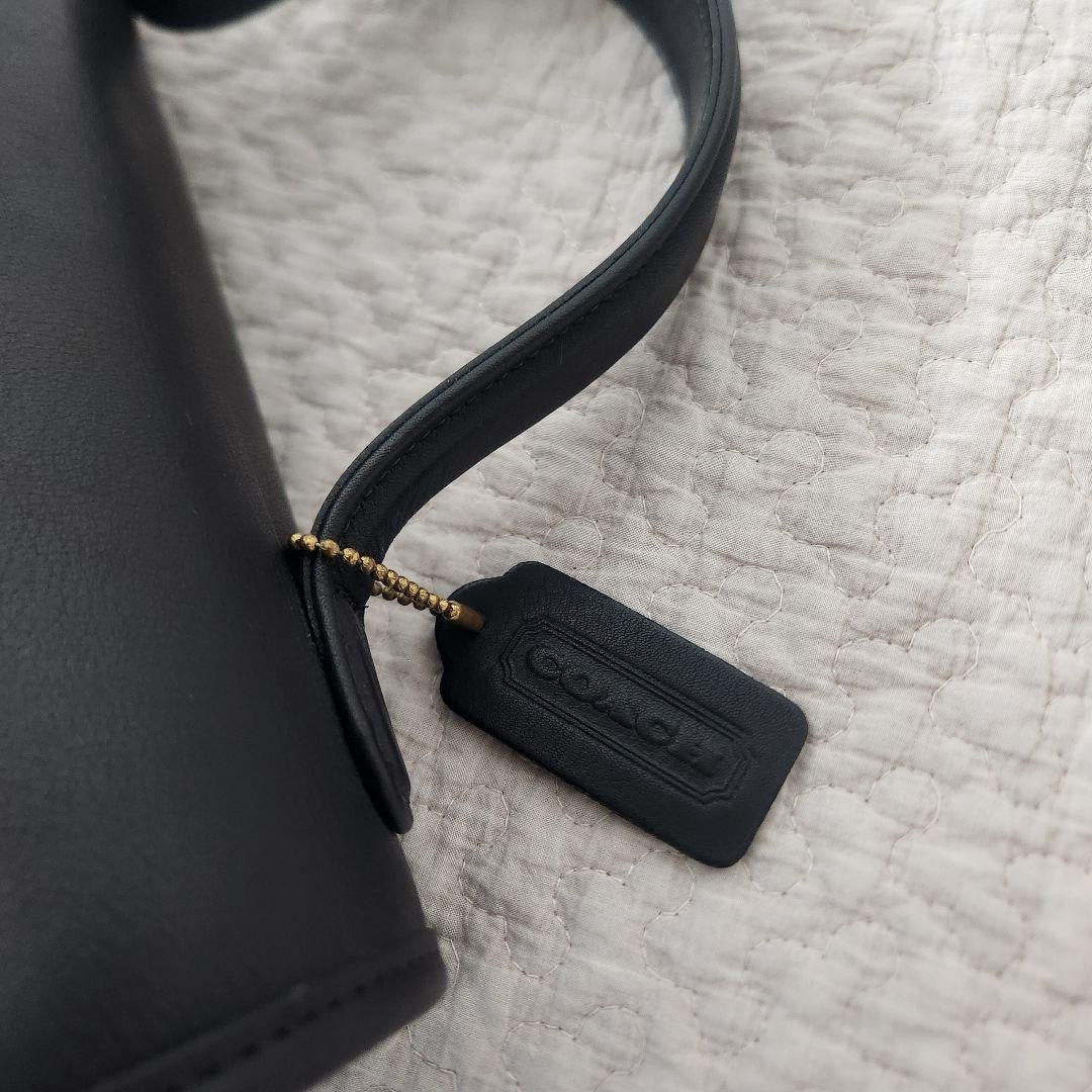 COACH Hand Bag Tote Purse Old Turn Lock Leather Black Authentic