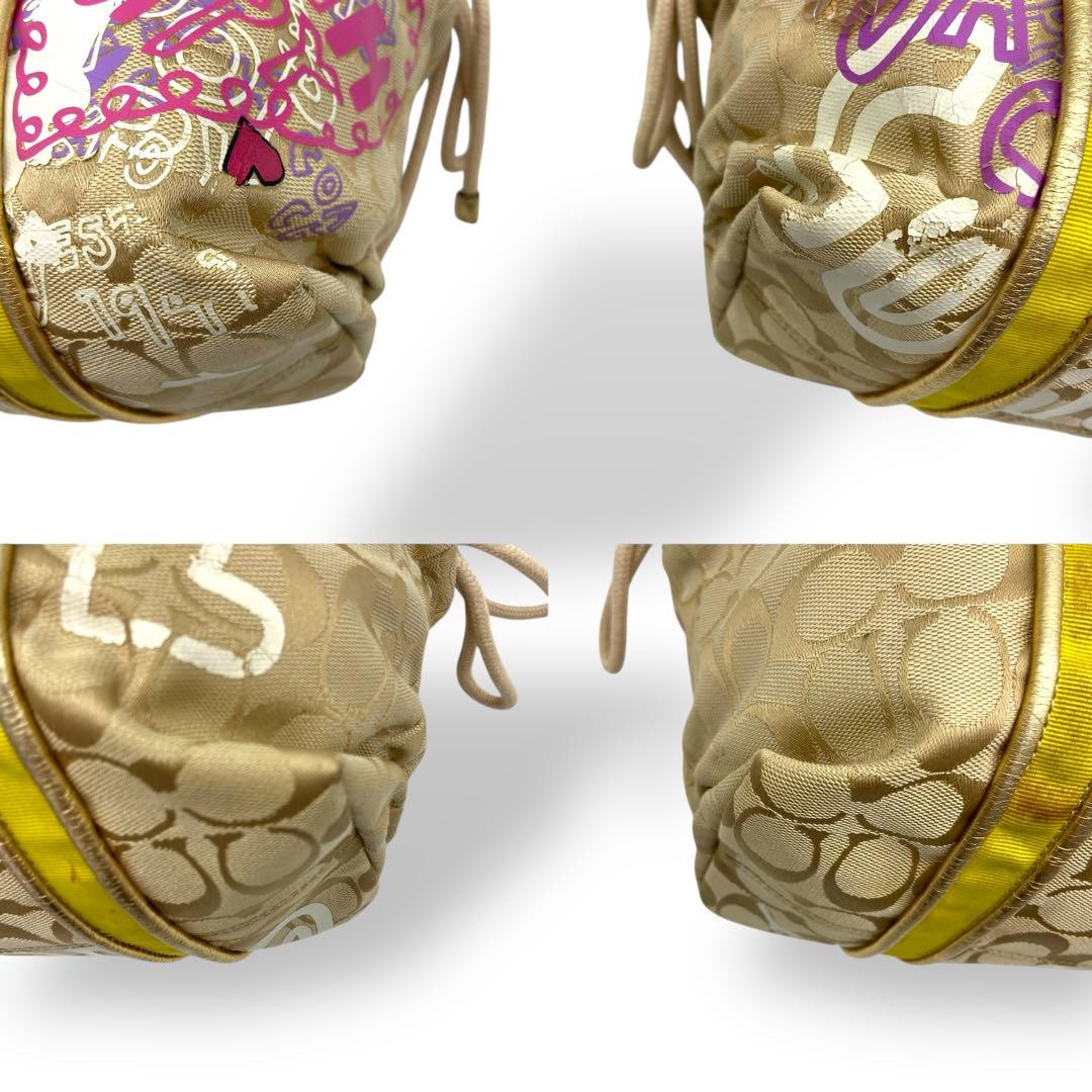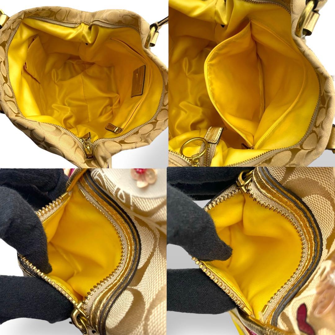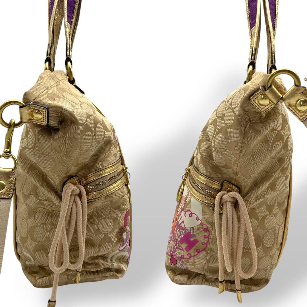 COACH Hand Bag Tote Purse Signature Canvas Leather Beige Authentic