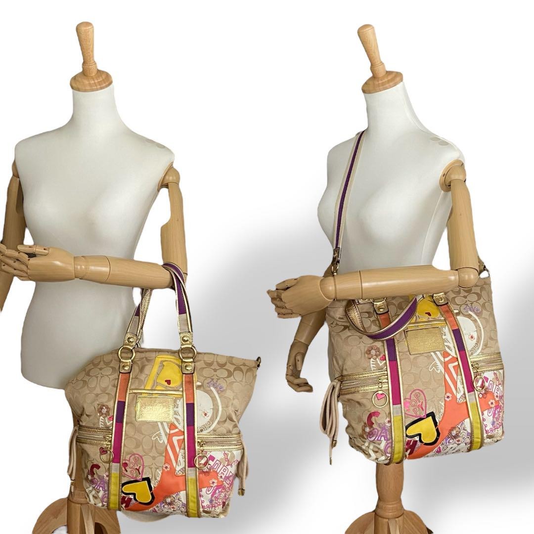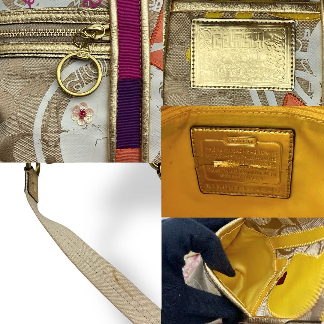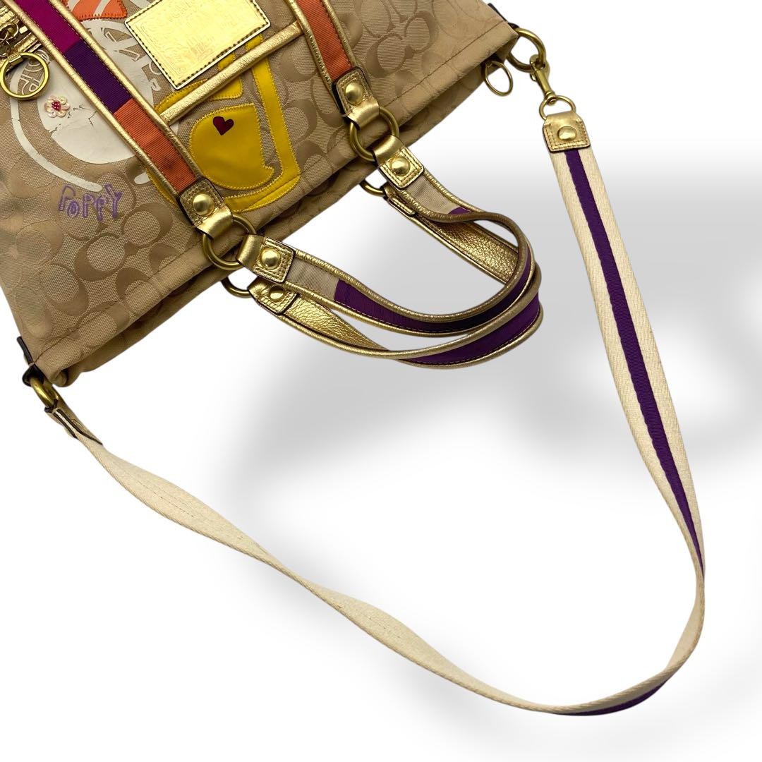 COACH Hand Bag Tote Purse Signature Canvas Leather Beige Authentic
