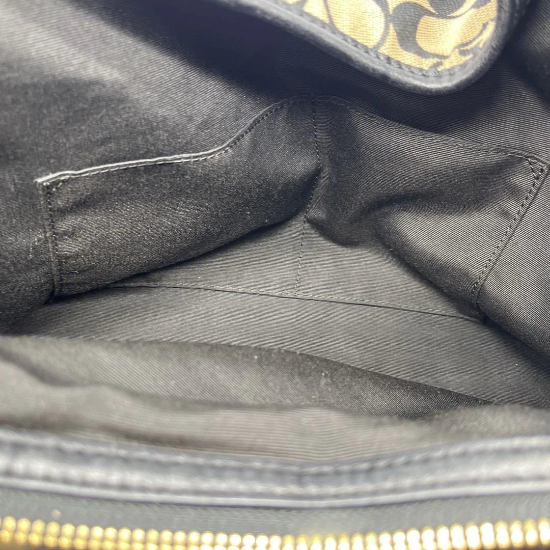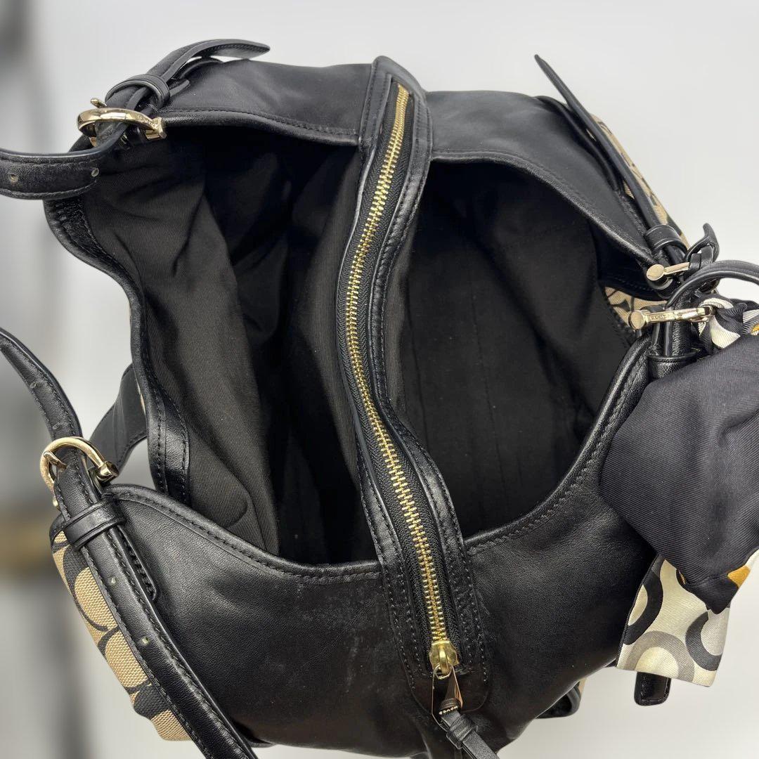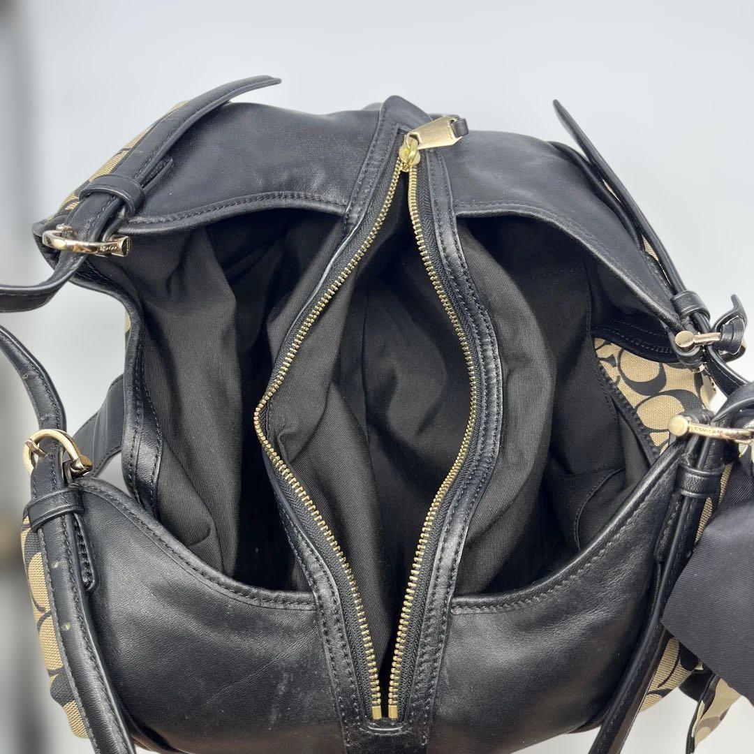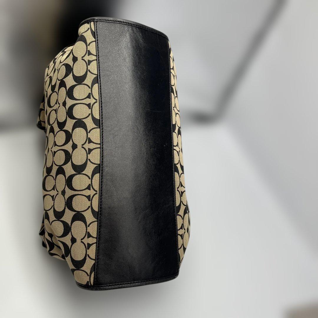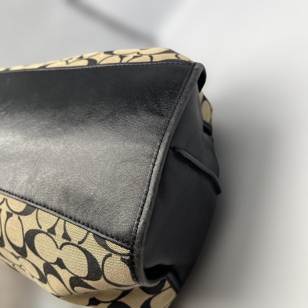 COACH Hand Bag Tote Purse Signature Canvas Leather Beige Black Authentic
