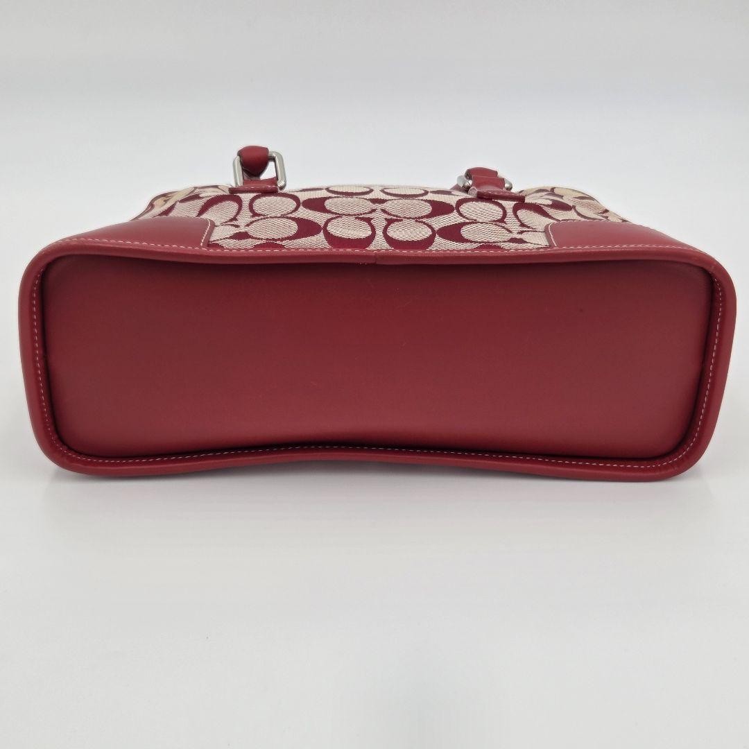 COACH Hand Bag Tote Purse Signature Canvas Leather Red Authentic