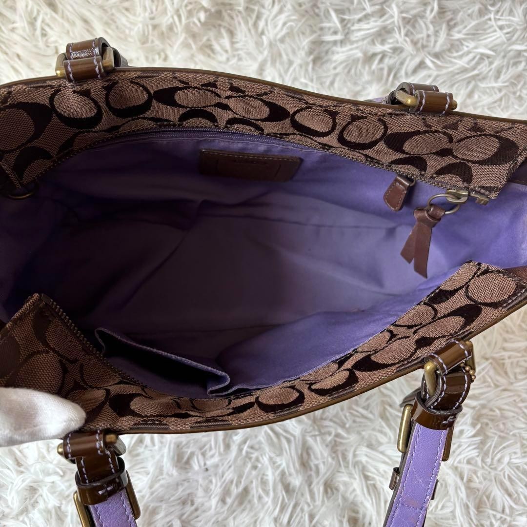 COACH Hand Bag Tote Purse Signature Patchwork Canvas Leather Brown Authentic