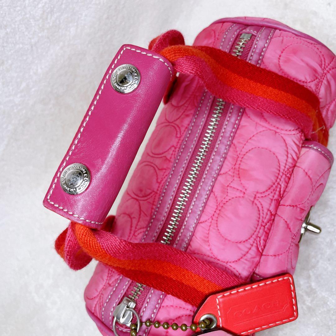 COACH Hand Bag Tote Purse Turn Lock Signature Nylon Suede Pink Red Authentic