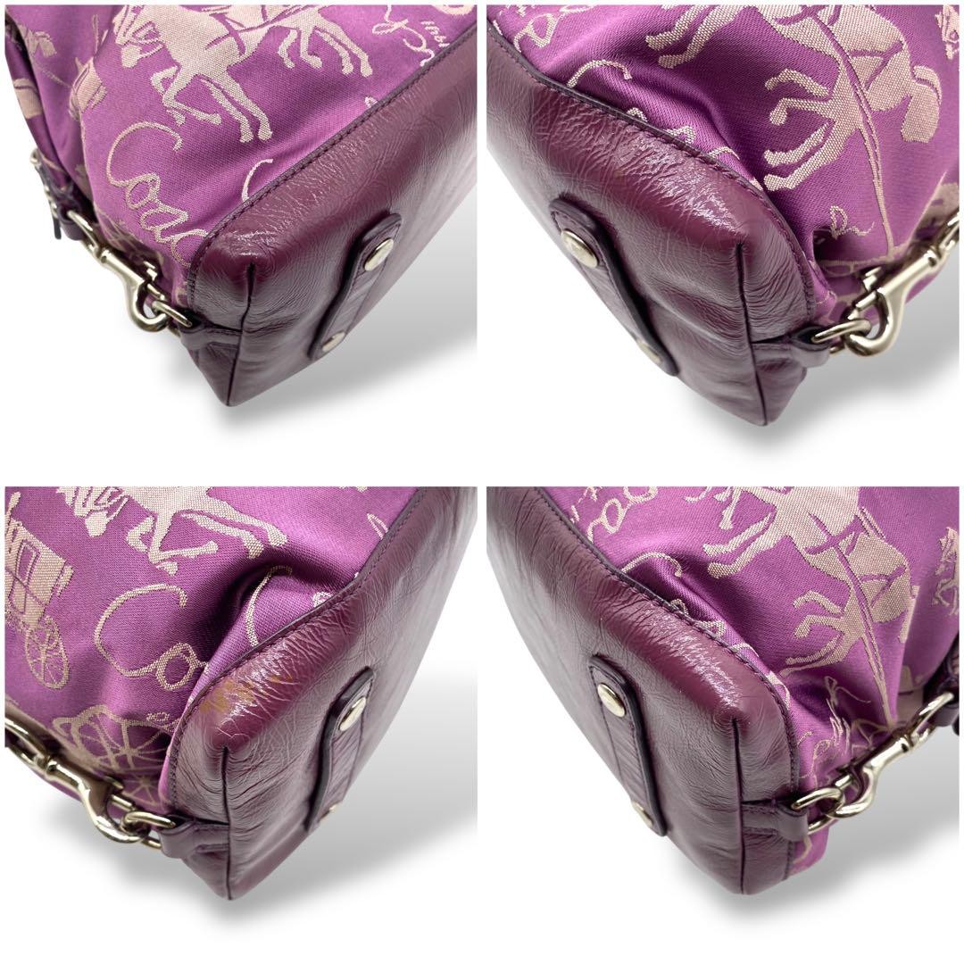 COACH Hand Shoulder Bag Tote Purse 2way Canvas Leather Purple Authentic