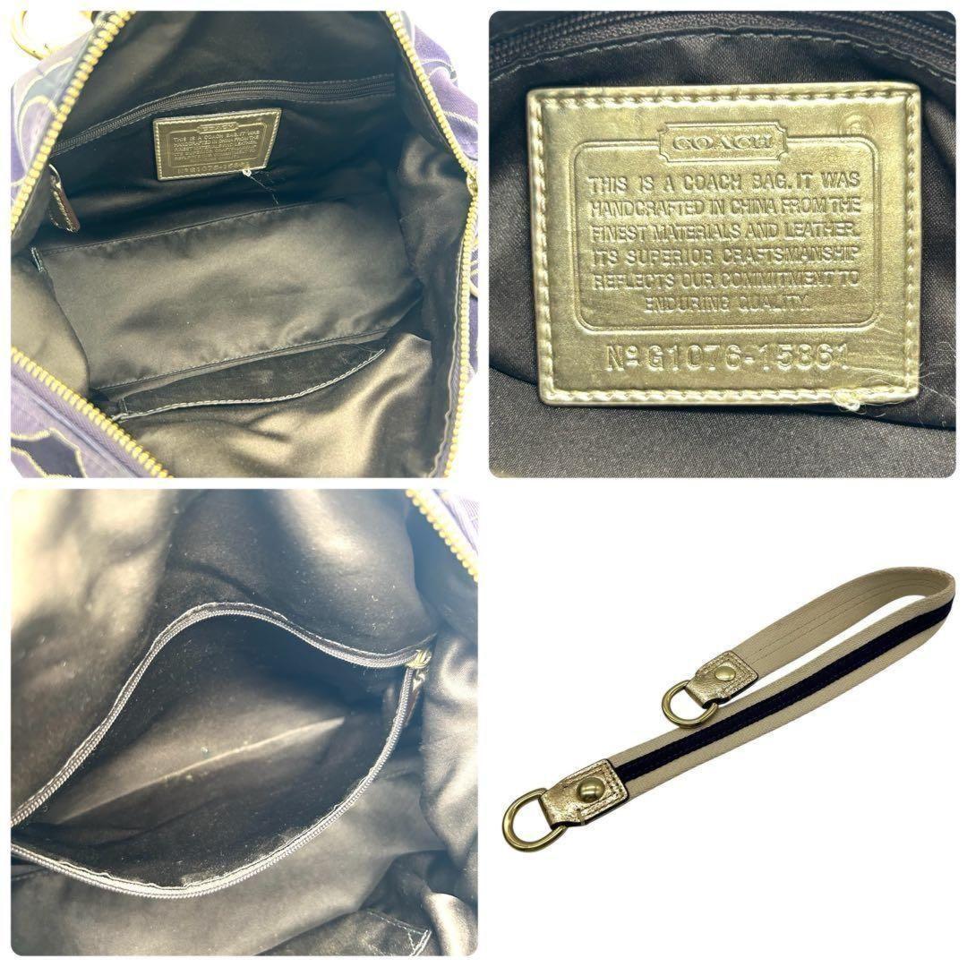 COACH Hand Shoulder Bag Tote Purse 2way Poppy Canvas Leather Purple Authentic