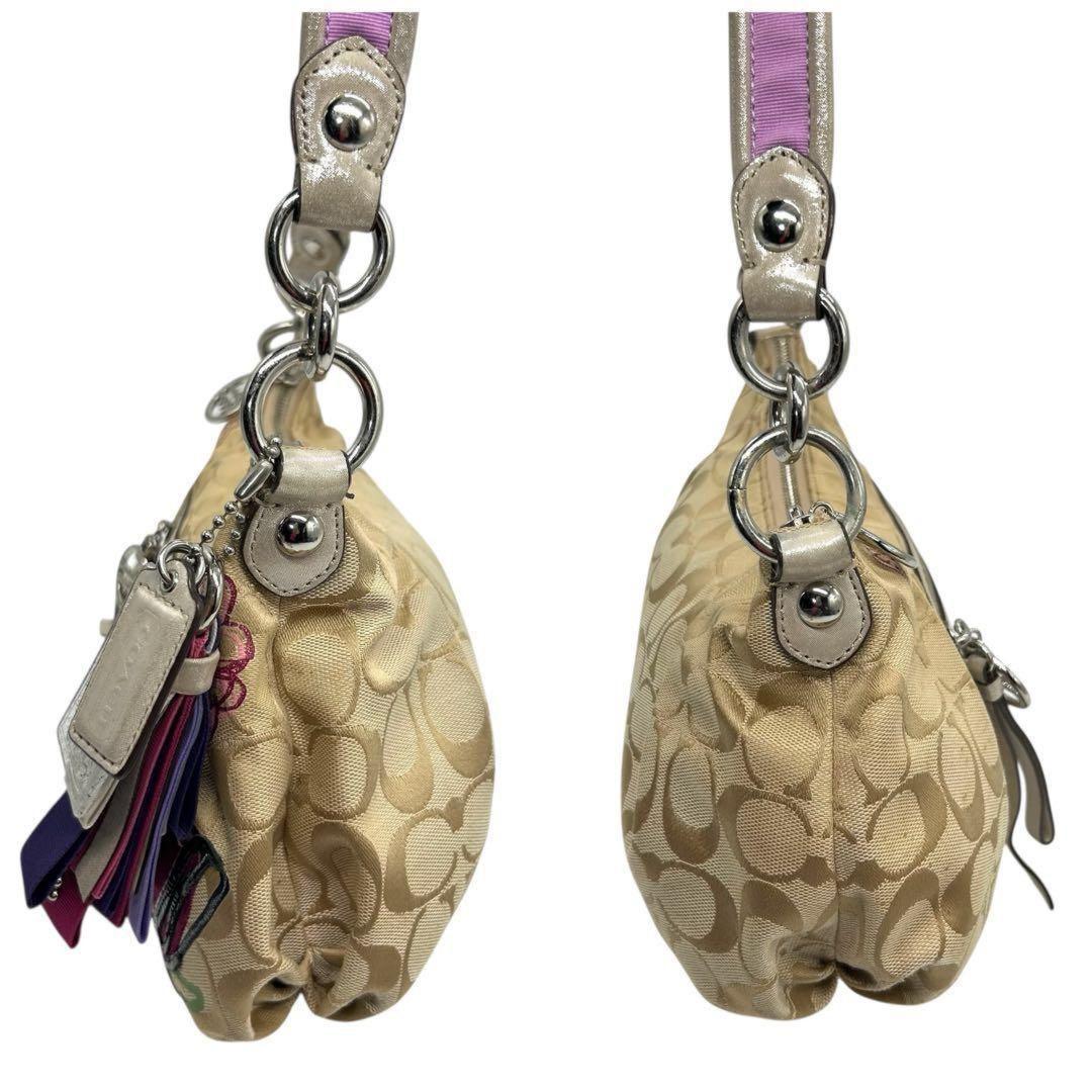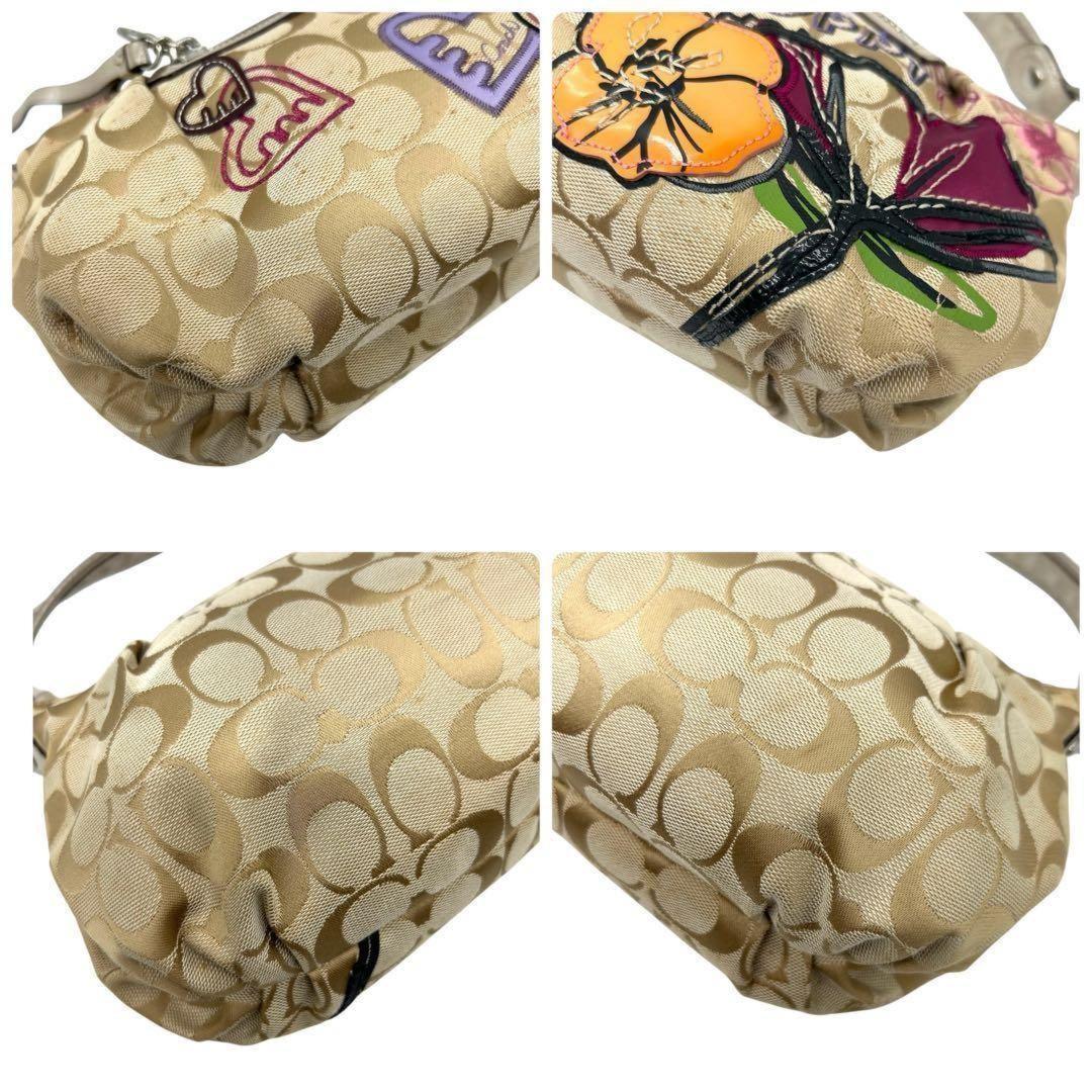 COACH Hand Shoulder Bag Tote Purse 2way poppy Signature Canvas Gold Authentic