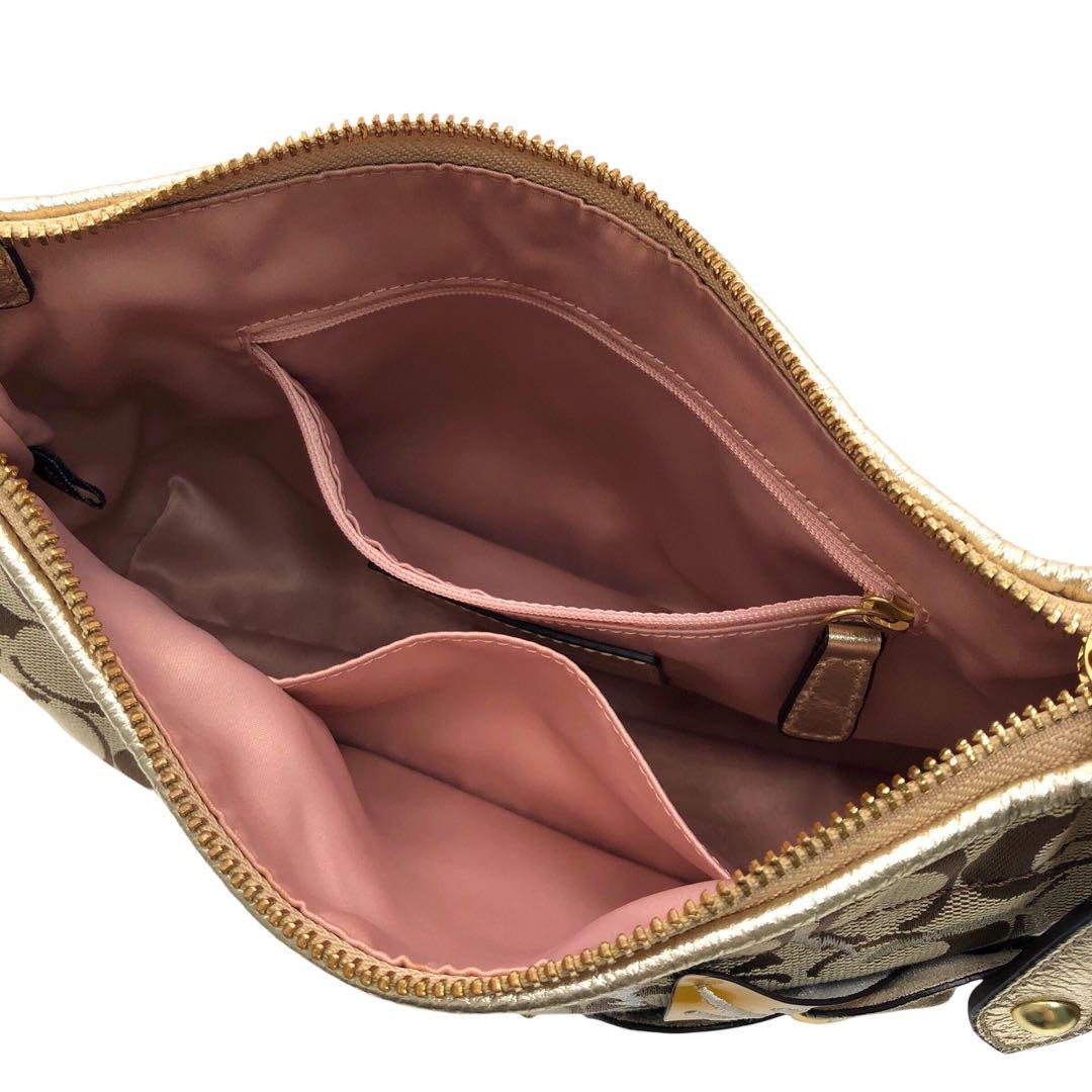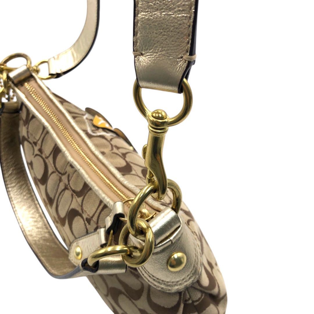 COACH Hand Shoulder Bag Tote Purse 2way Signature Canvas Leather Beige Authentic