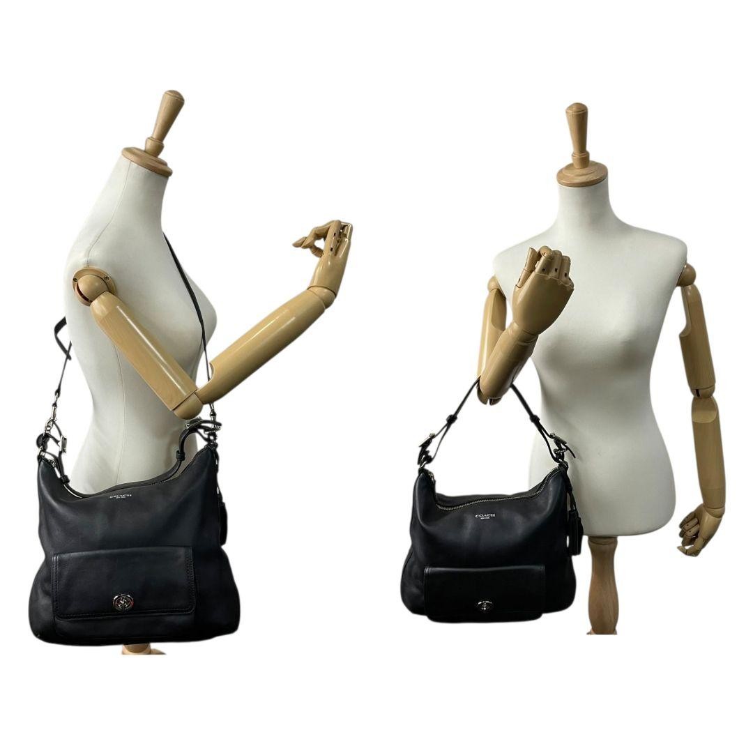 COACH Hand Shoulder Bag Tote Purse 2way Turn Lock Leather Black Authentic