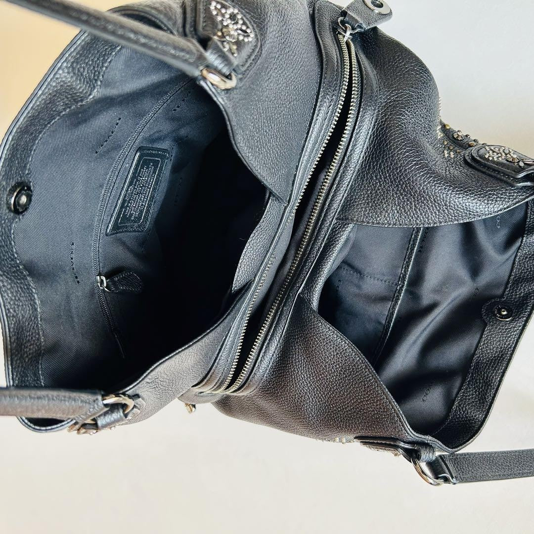 COACH Hand Shoulder Bag Tote Purse Leather Black Authentic