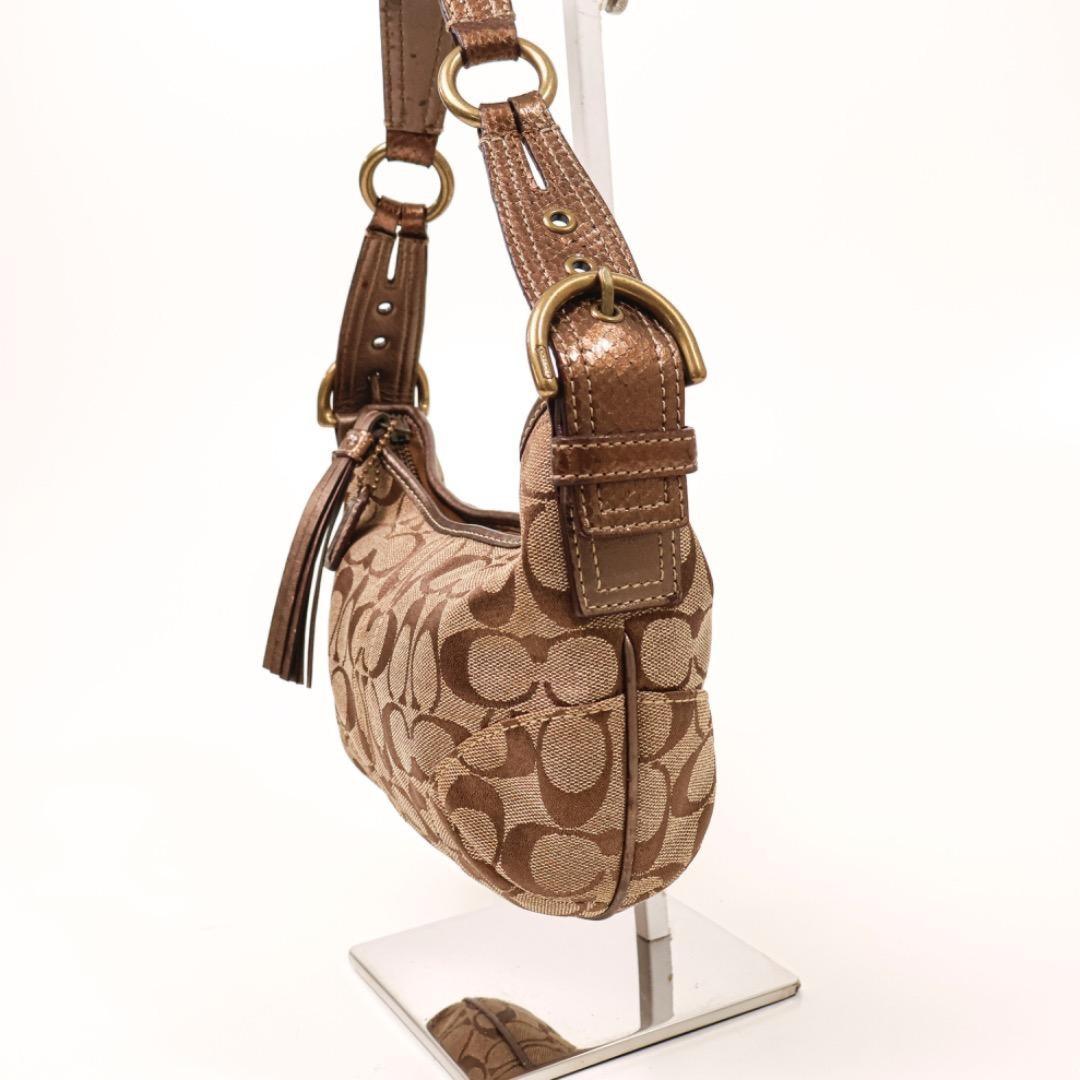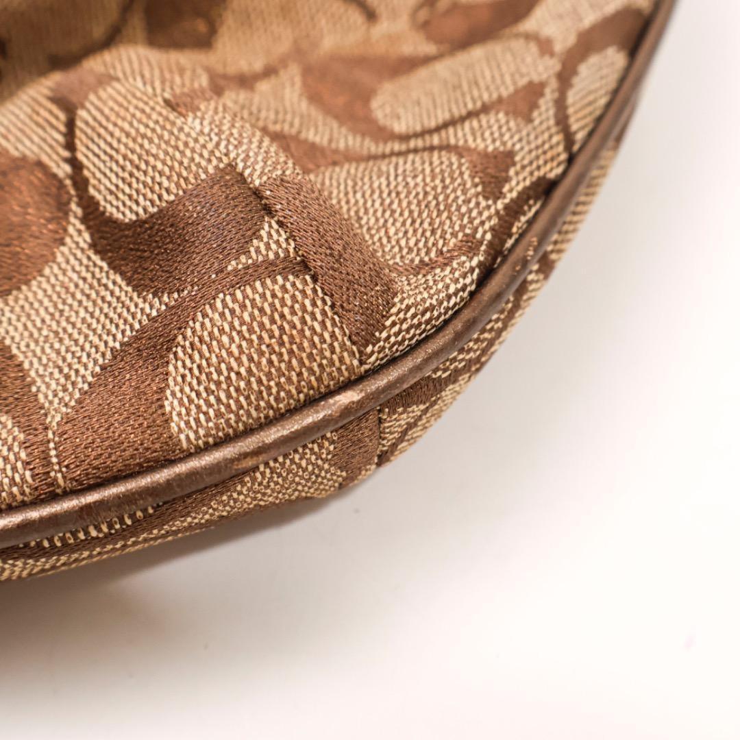 COACH Hand Shoulder Bag Tote Purse Signature Nylon Canvas Brown Authentic