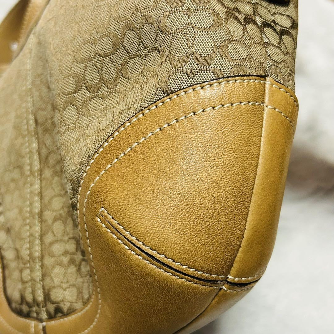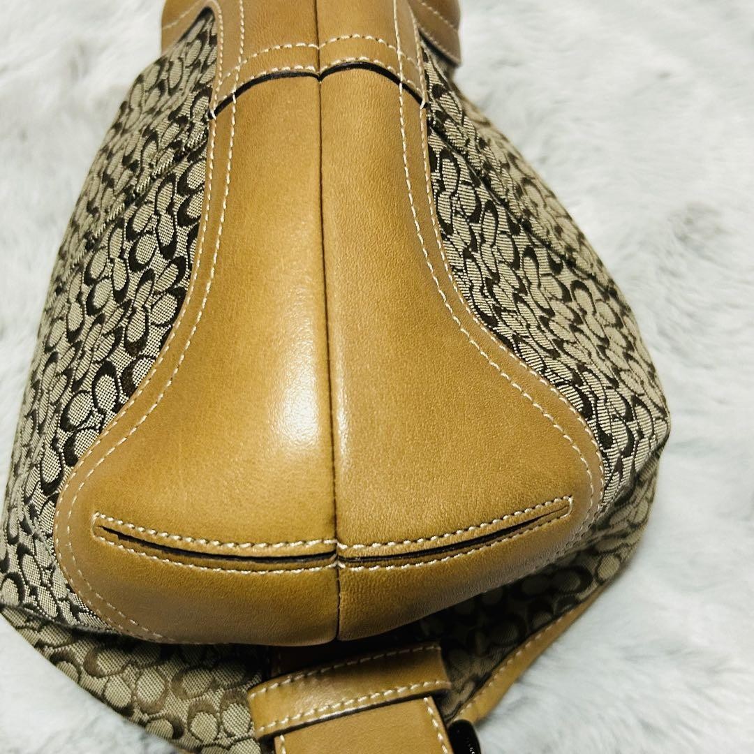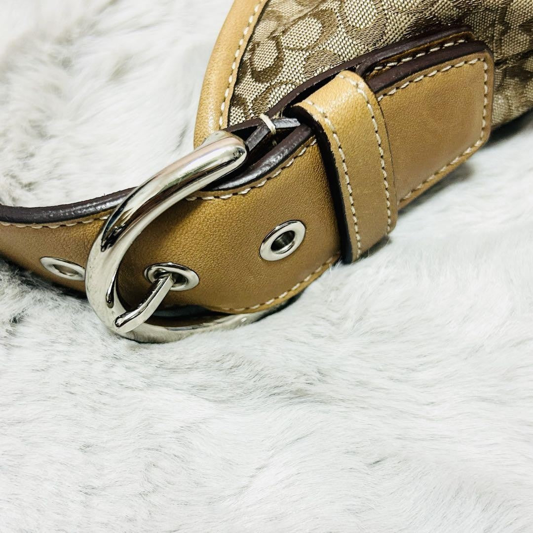 COACH Hand Shoulder Bag Tote Purse Signature Suede Leather Brown Authentic