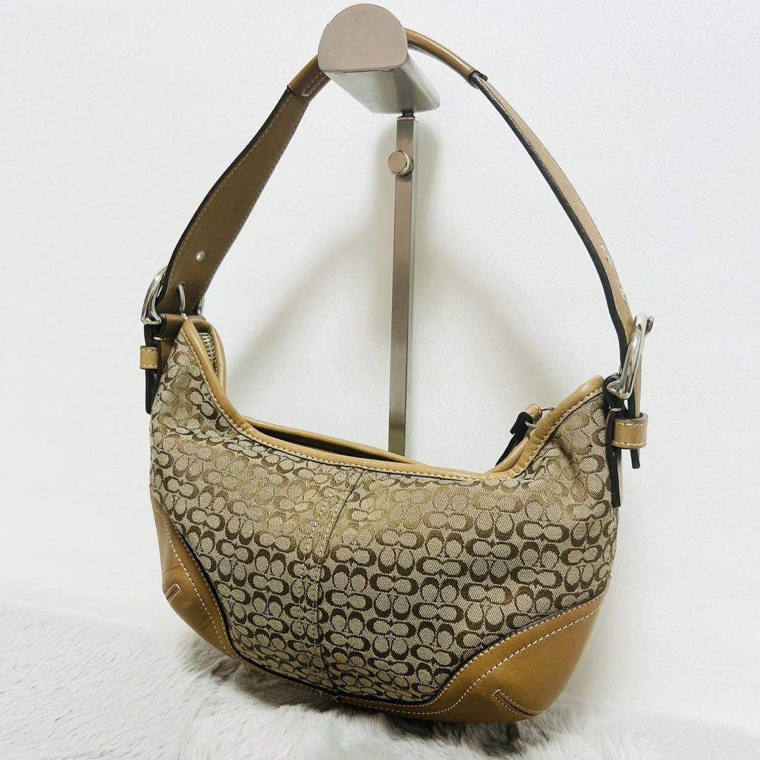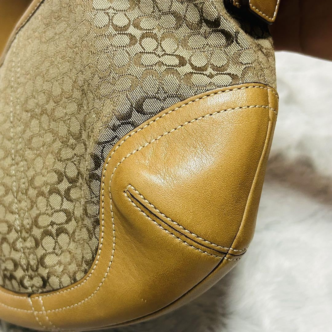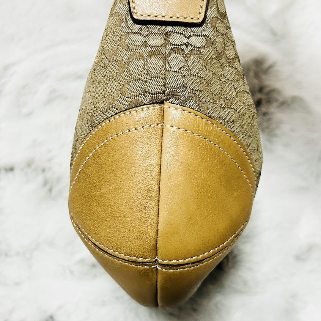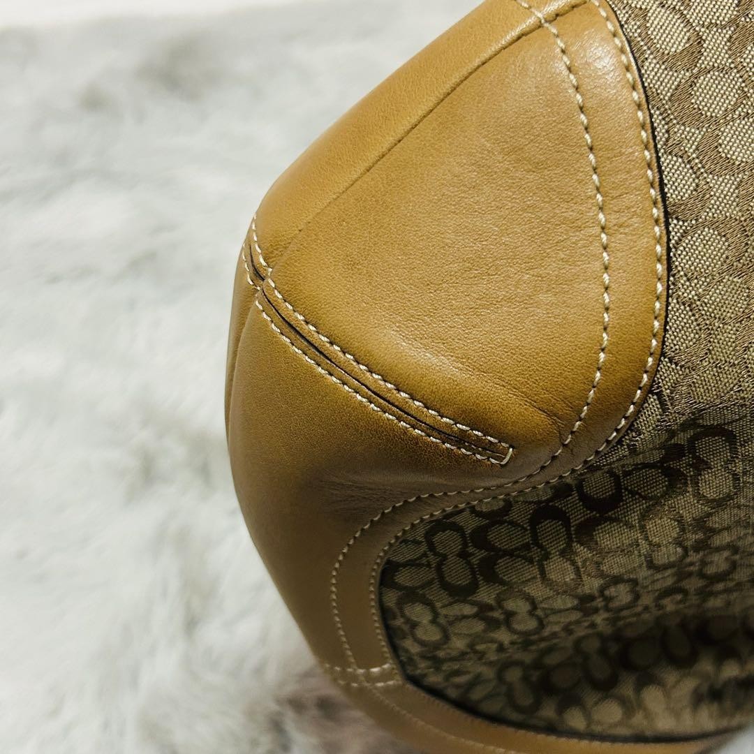 COACH Hand Shoulder Bag Tote Purse Signature Suede Leather Brown Authentic