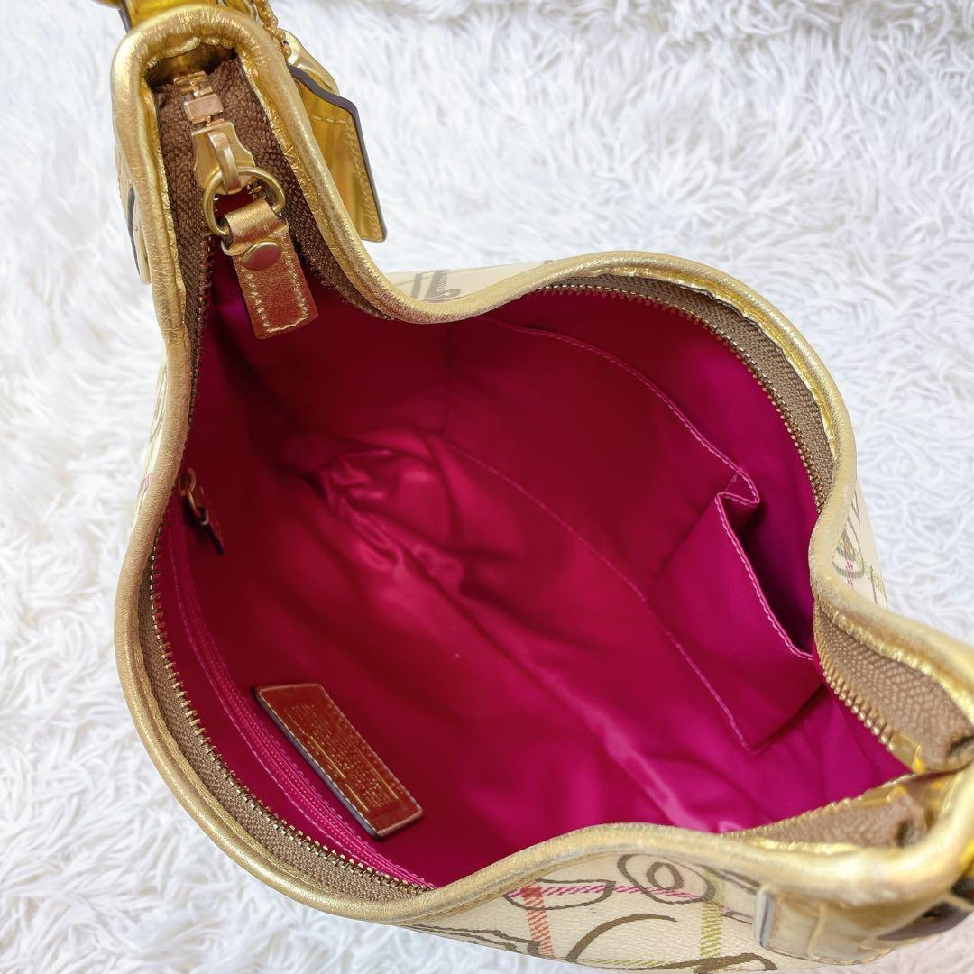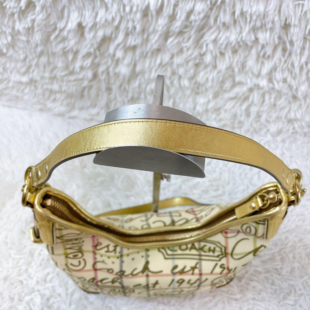 COACH Shoulder Bag Purse 2way PVC Leather Beige Multicolor Authentic