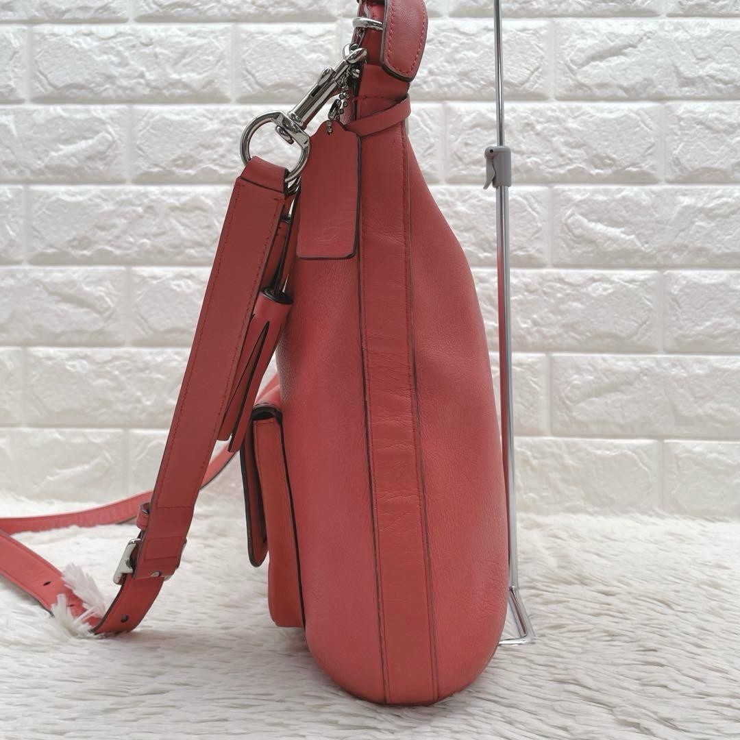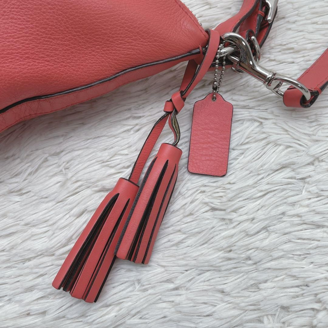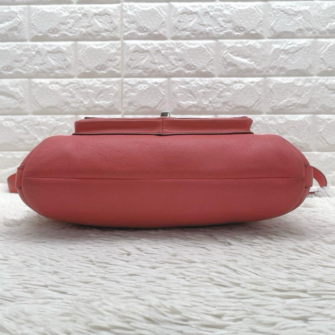 COACH Shoulder Bag Purse 2way Turn Lock Leather Orange Authentic