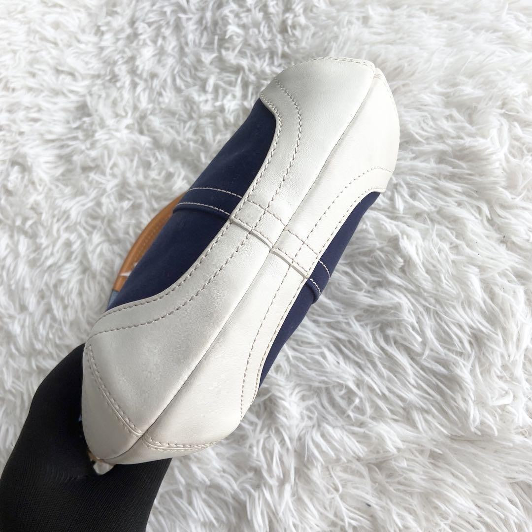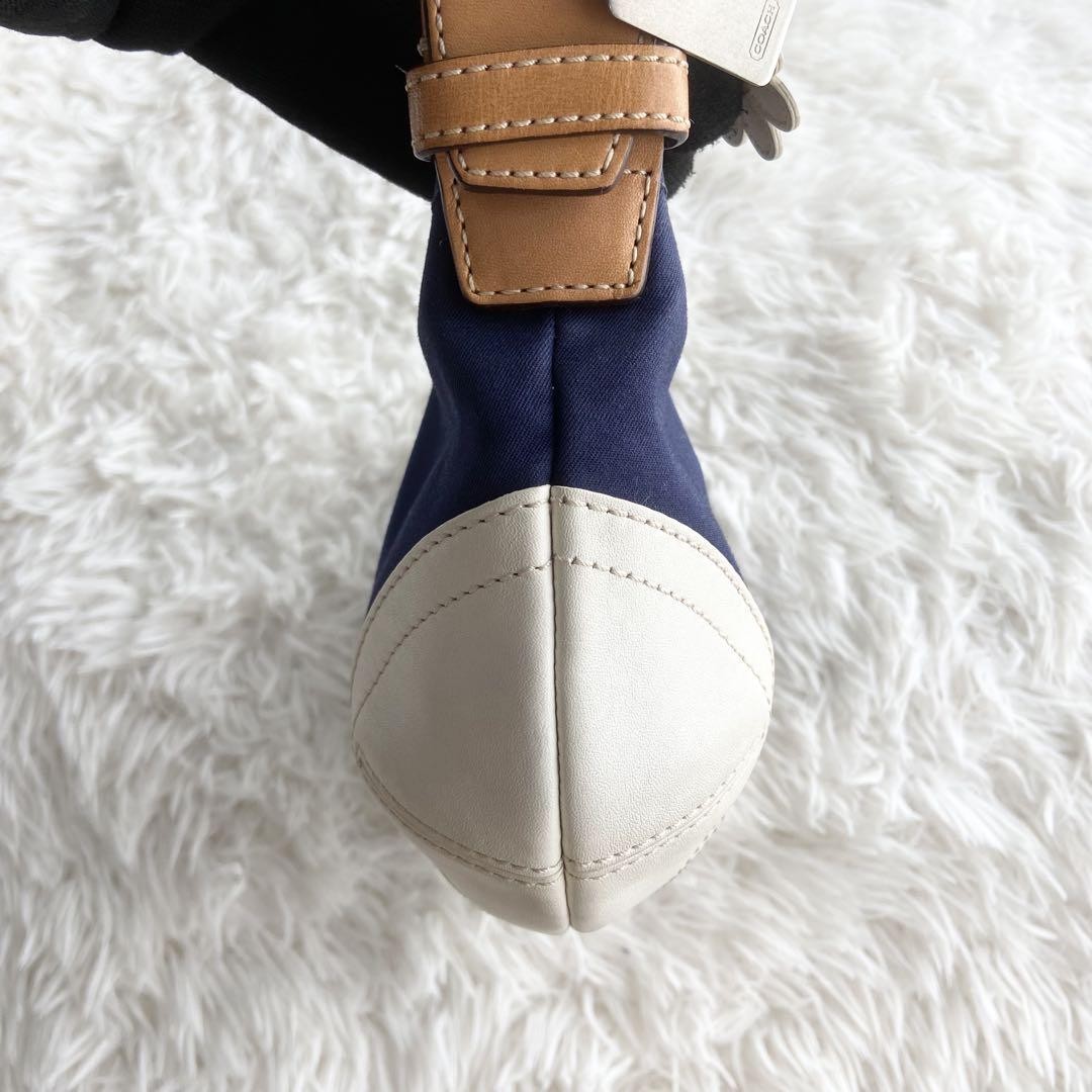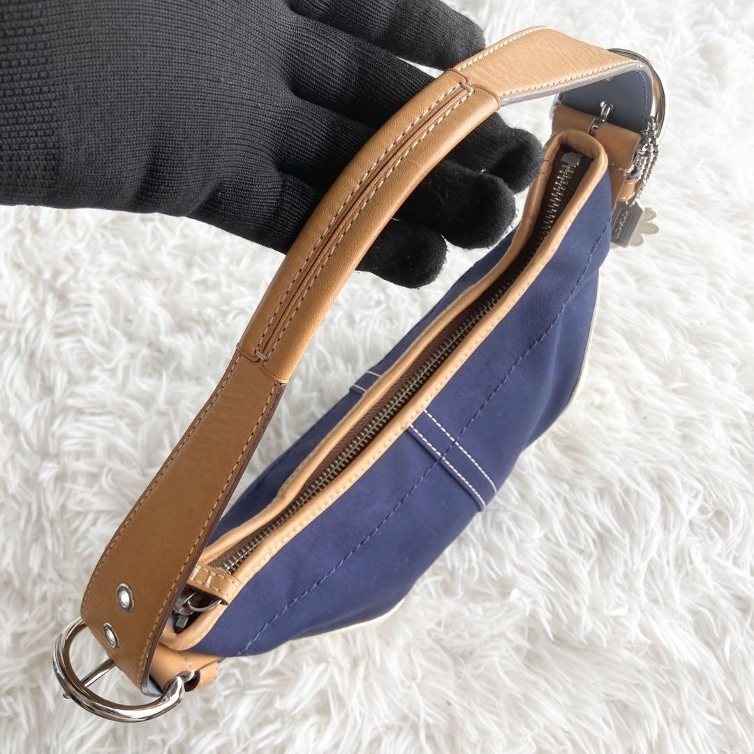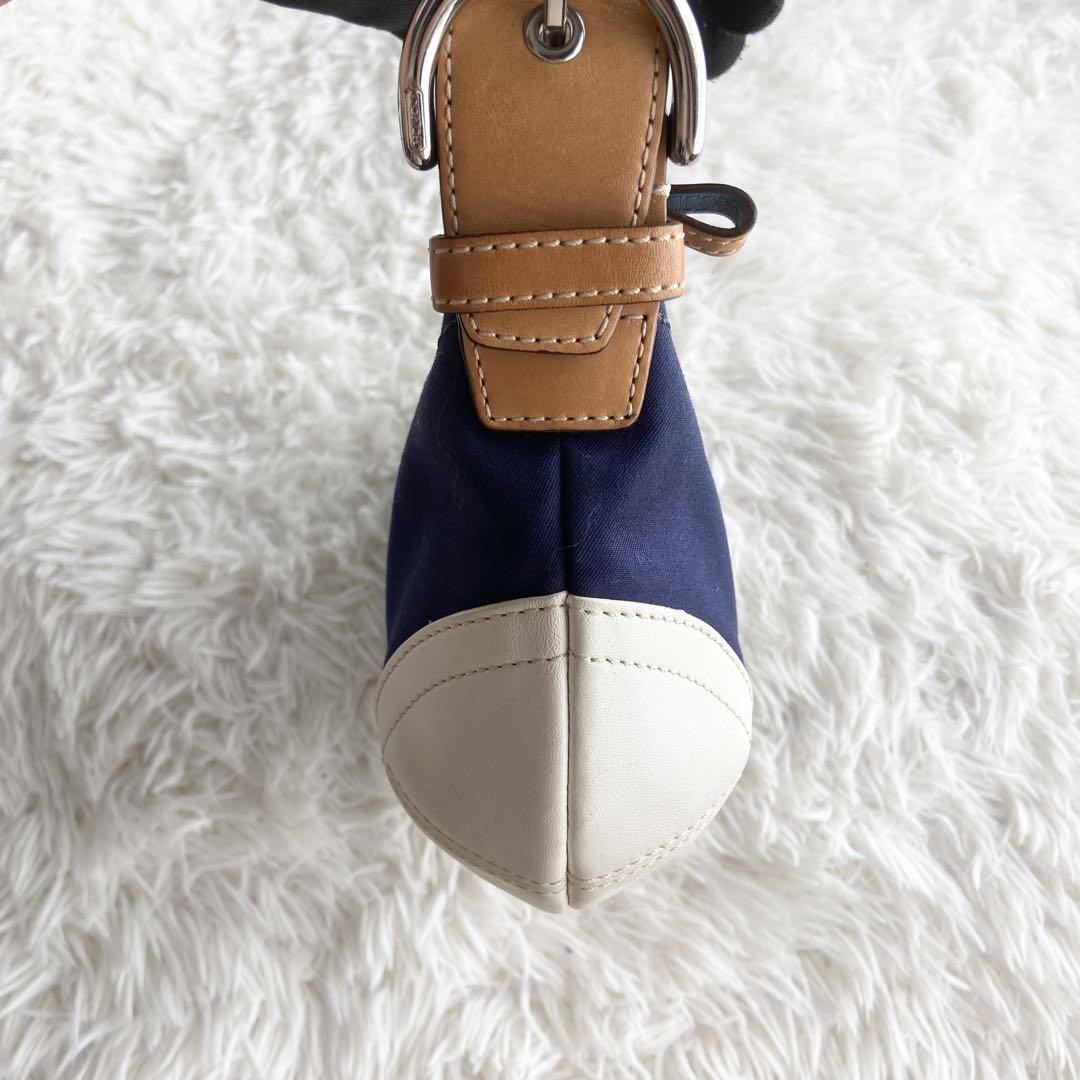 COACH Shoulder Bag Purse Canvas Leather Navy White Authentic
